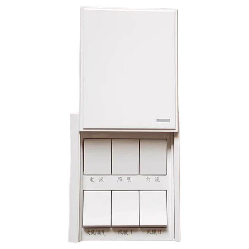 浴霸开关六开滑盖翻盖带防水盒6开16A风暖浴室法狮龙通用86型面板