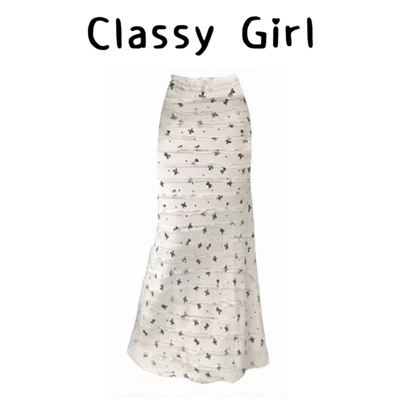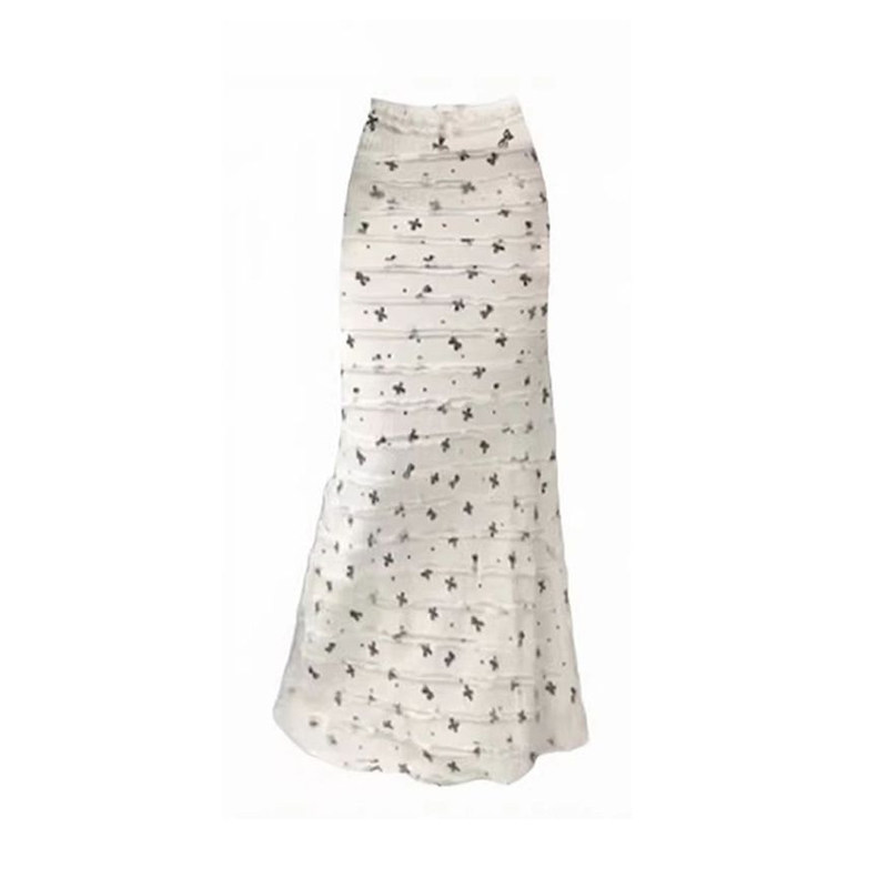 白色碎花鱼尾半身裙女夏天穿搭小个子包臀长款裙子春夏季韩系穿搭