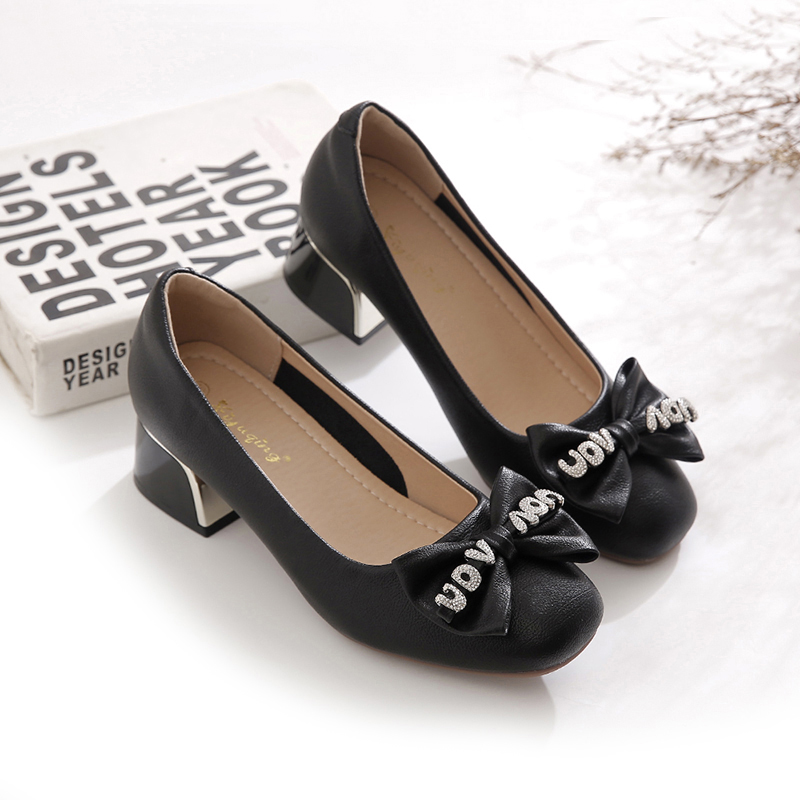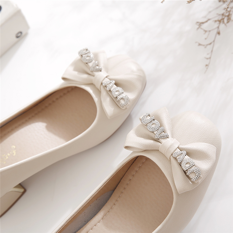 2025秋季新款蝴蝶结圆头妈妈鞋浅口时尚单鞋女粗跟不累脚气质女鞋