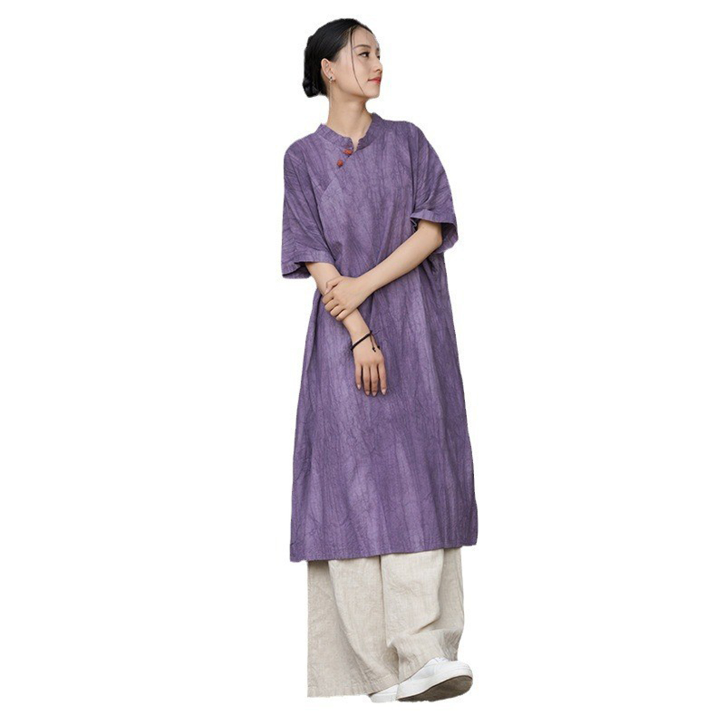 新中式斜襟连衣裙年轻款国风改良旗袍裙高端苎麻扎染宽松遮肉茶服