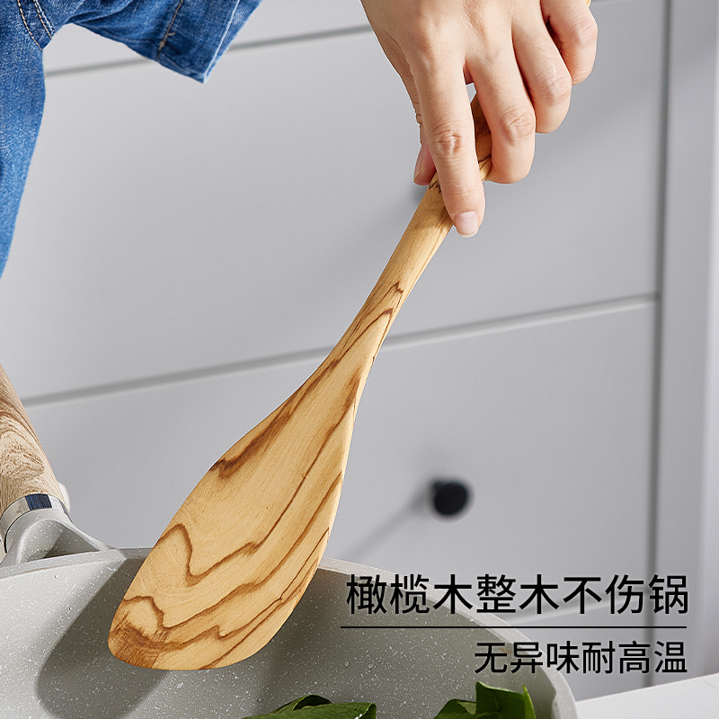 橄榄木汤勺实木质斜铲炒菜木铲木勺家用短柄小号锅铲套装平底锅铲