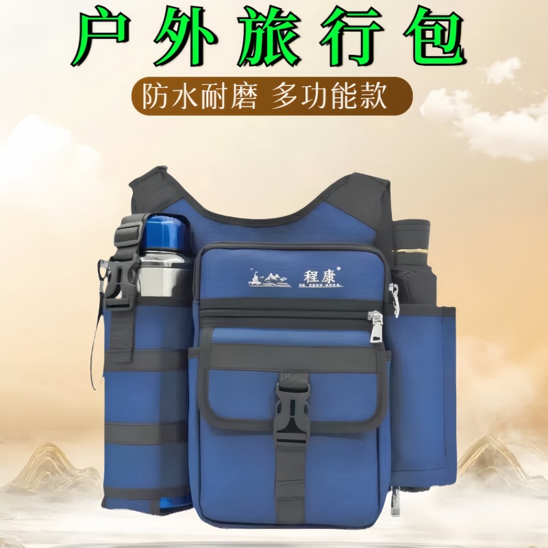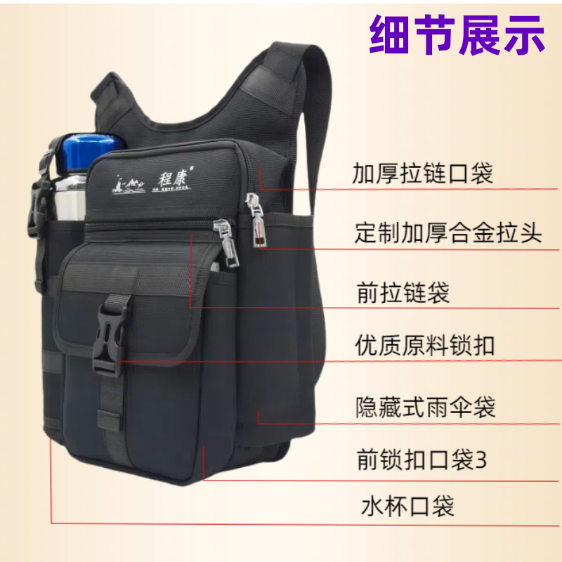 户外出行短途骑行男女单肩斜挎包保温水壶雨伞手机一体包防水背包