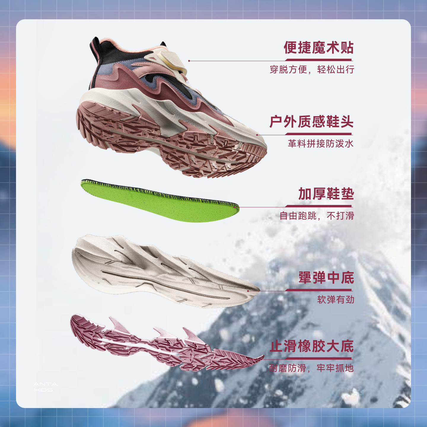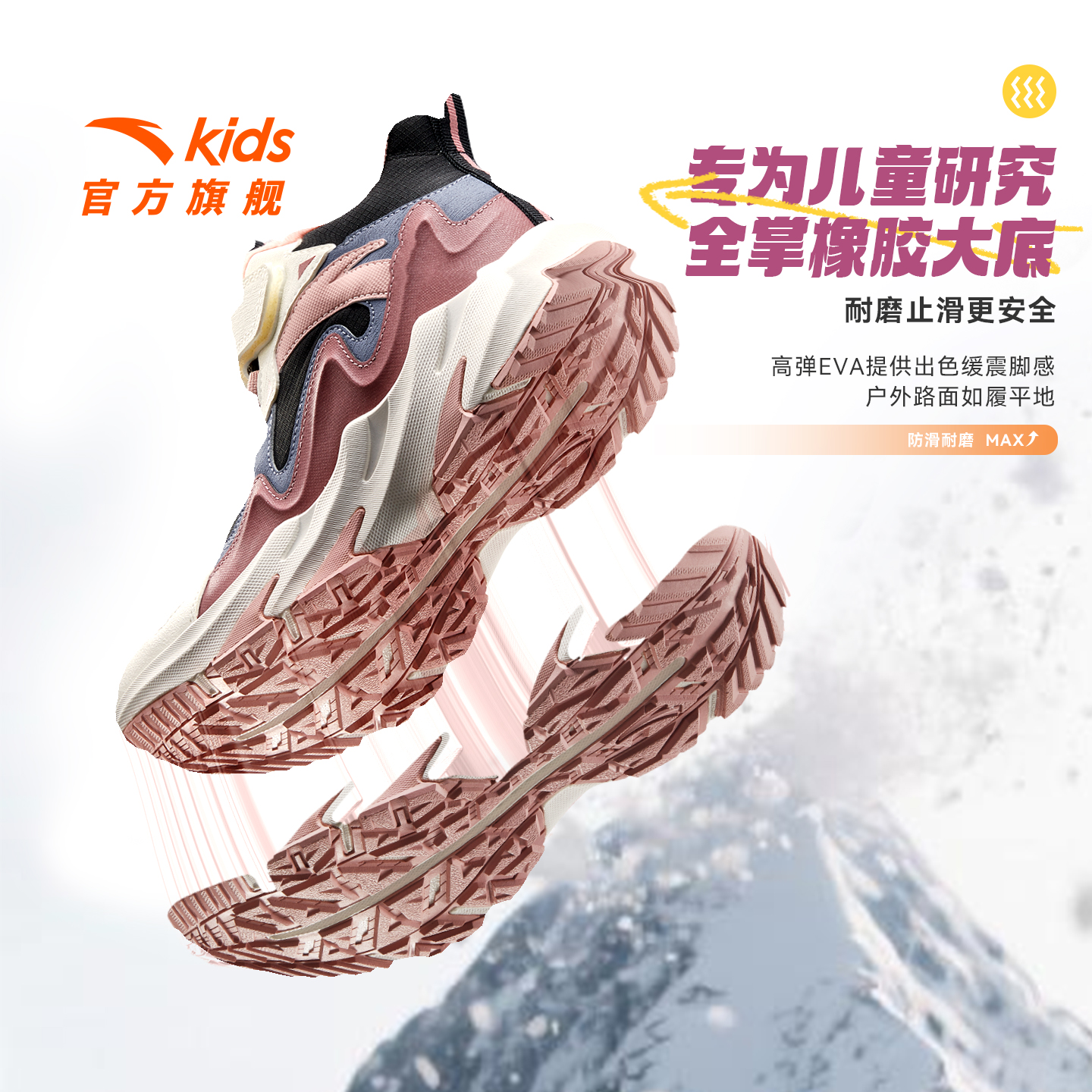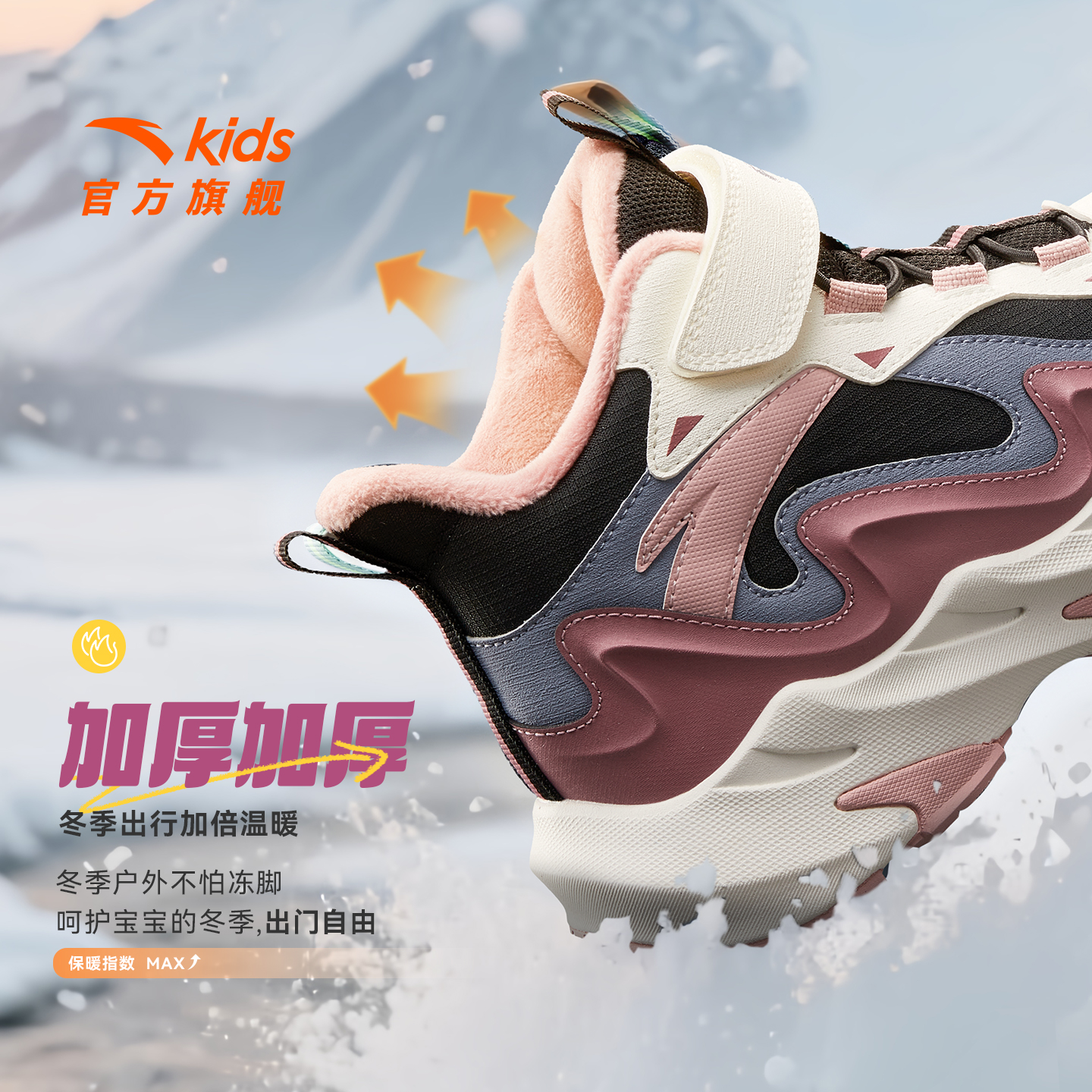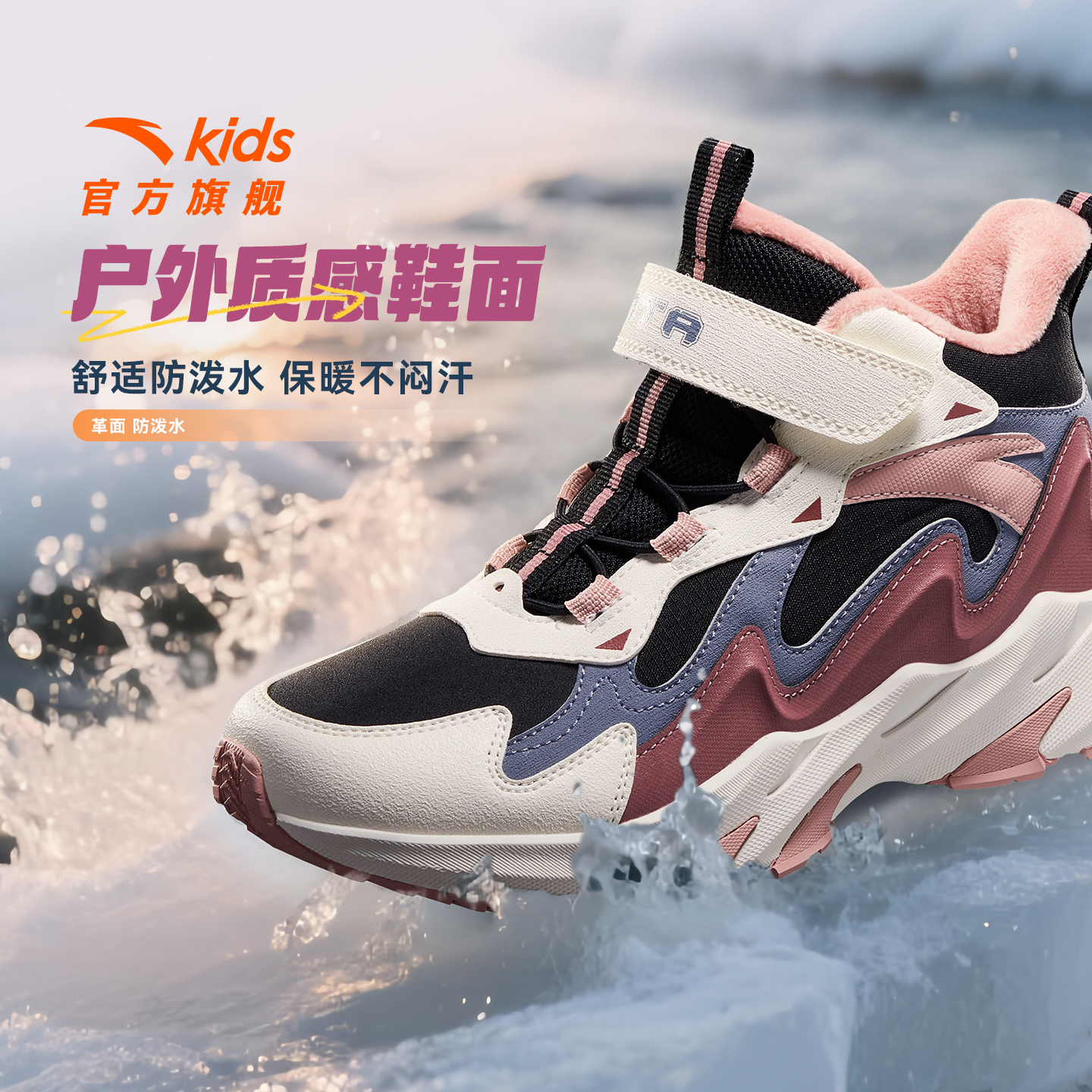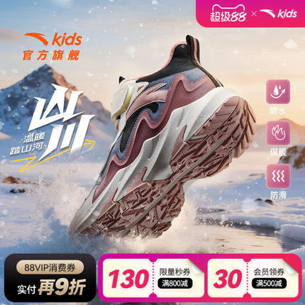 安踏儿童女大童雪地靴二棉鞋女孩冬季保暖加绒运动鞋冬鞋女童棉靴