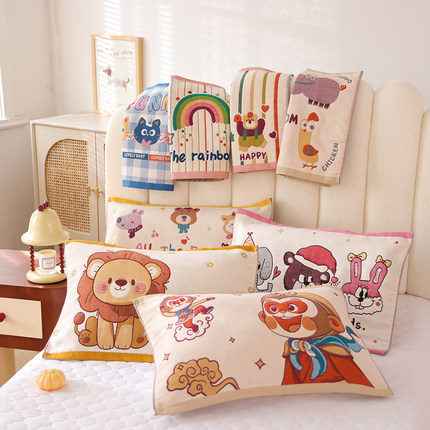 八层加厚纯棉纱布儿童枕巾单人家用卡通柔软透气全棉宝宝枕头盖巾