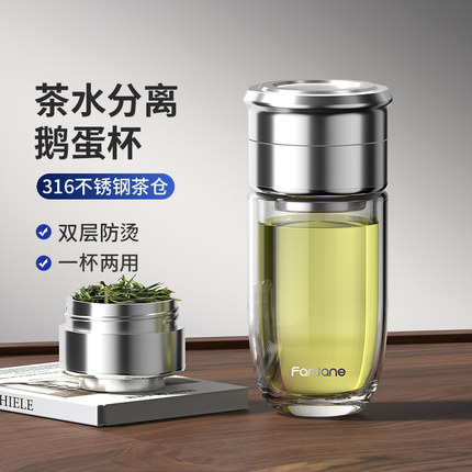 繁简玻璃杯鹅蛋茶水分离双层迷你泡茶杯男女便携旅行喝水杯子