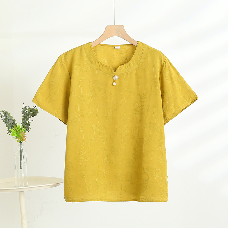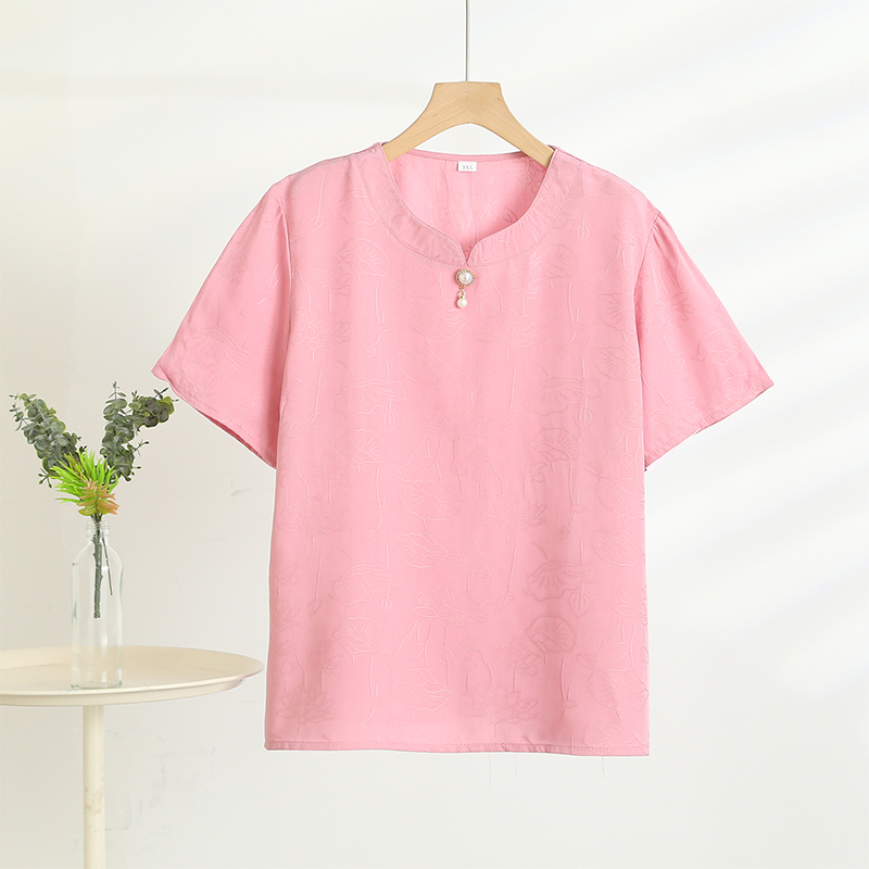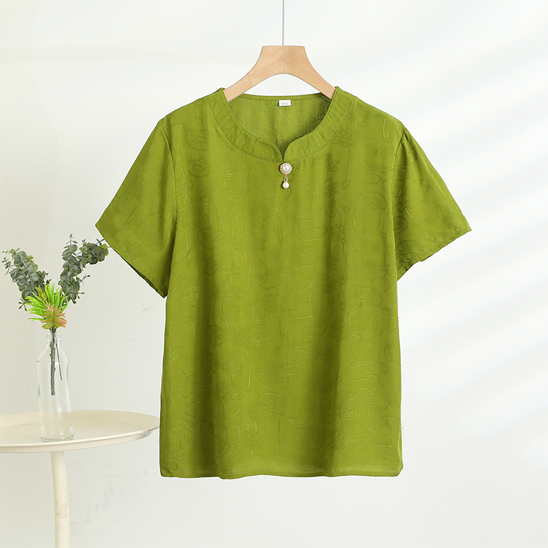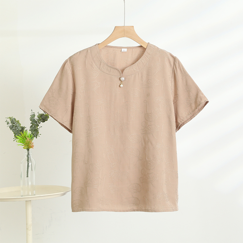外穿棉绸T恤女中老年妈妈装短袖打底衫夏薄款人造棉宽松显瘦上衣