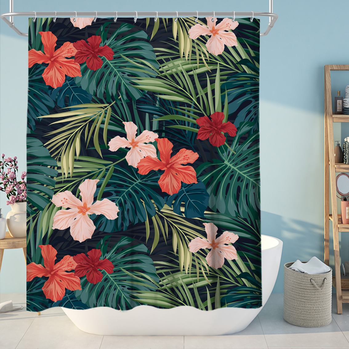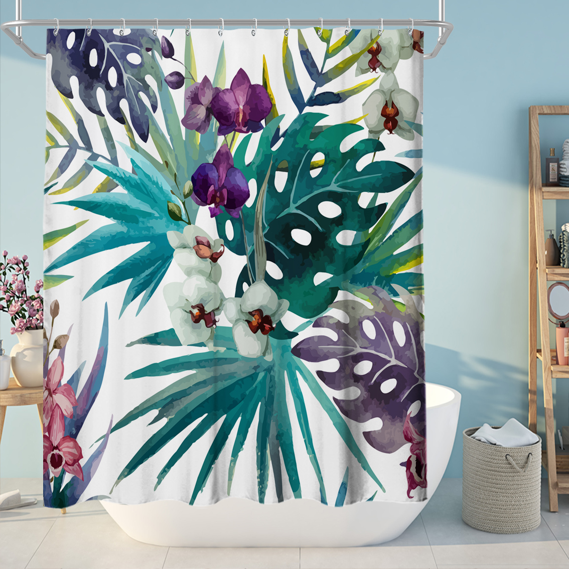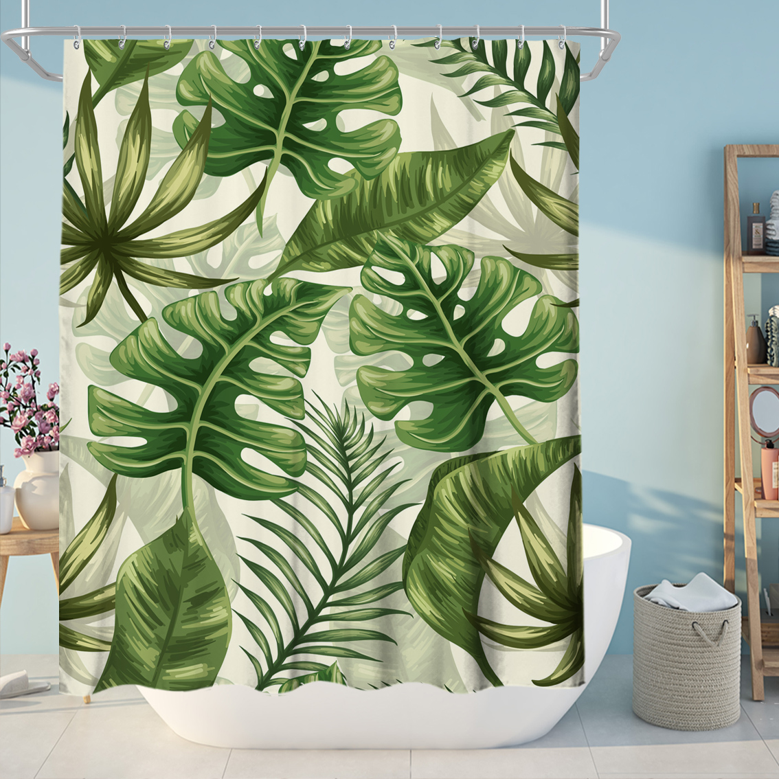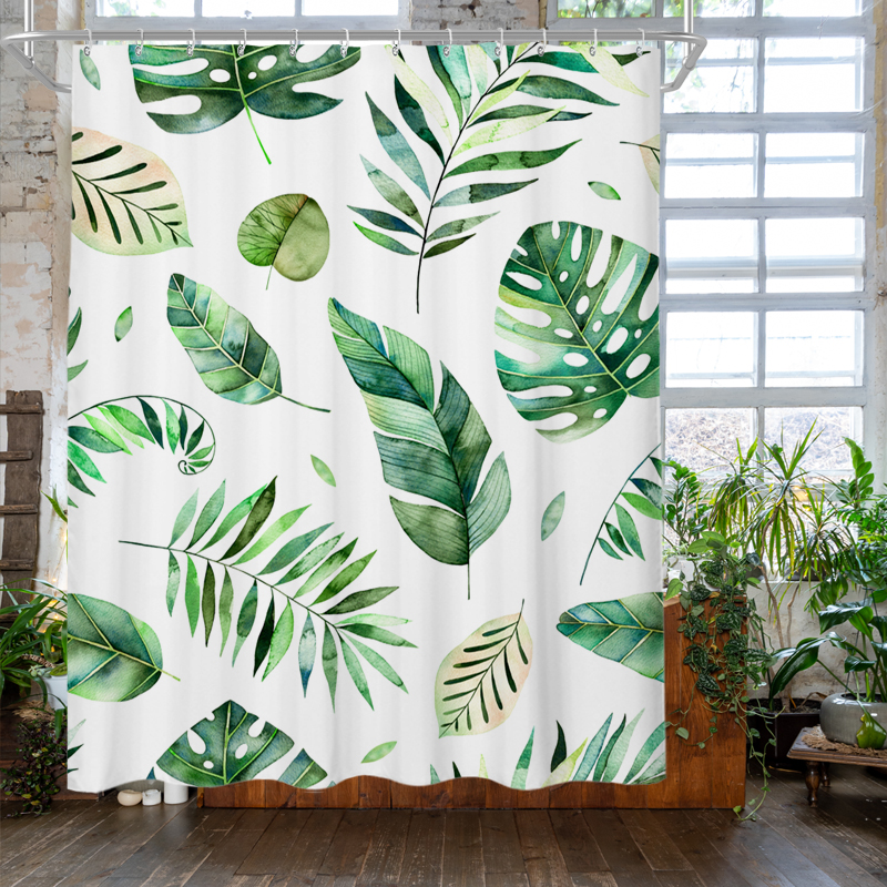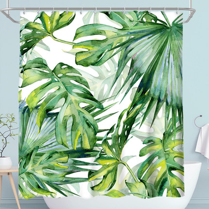 加厚卫生间浴帘北欧绿叶浴帘防水防霉免打孔快干耐脏干湿分离机洗
