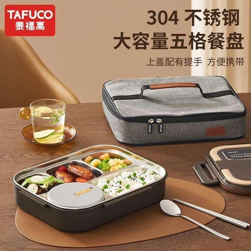 日本泰福高304不锈钢饭盒分格餐盒上班族分隔餐盘便携饭盒
