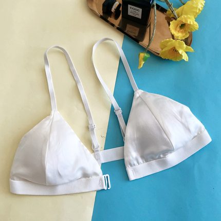 前扣内衣桑蚕丝100无钢圈舒适透气三角杯光面薄款女双面真丝文胸