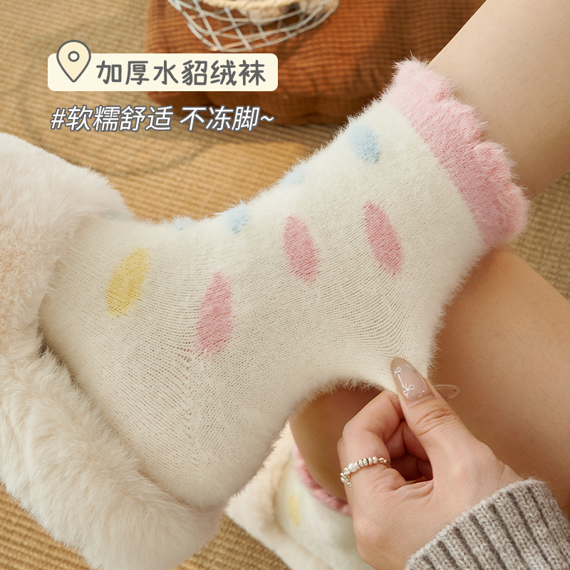 冬天保暖毛毛袜子女水貂绒加绒加厚卡通中筒袜居家保暖睡眠月子袜
