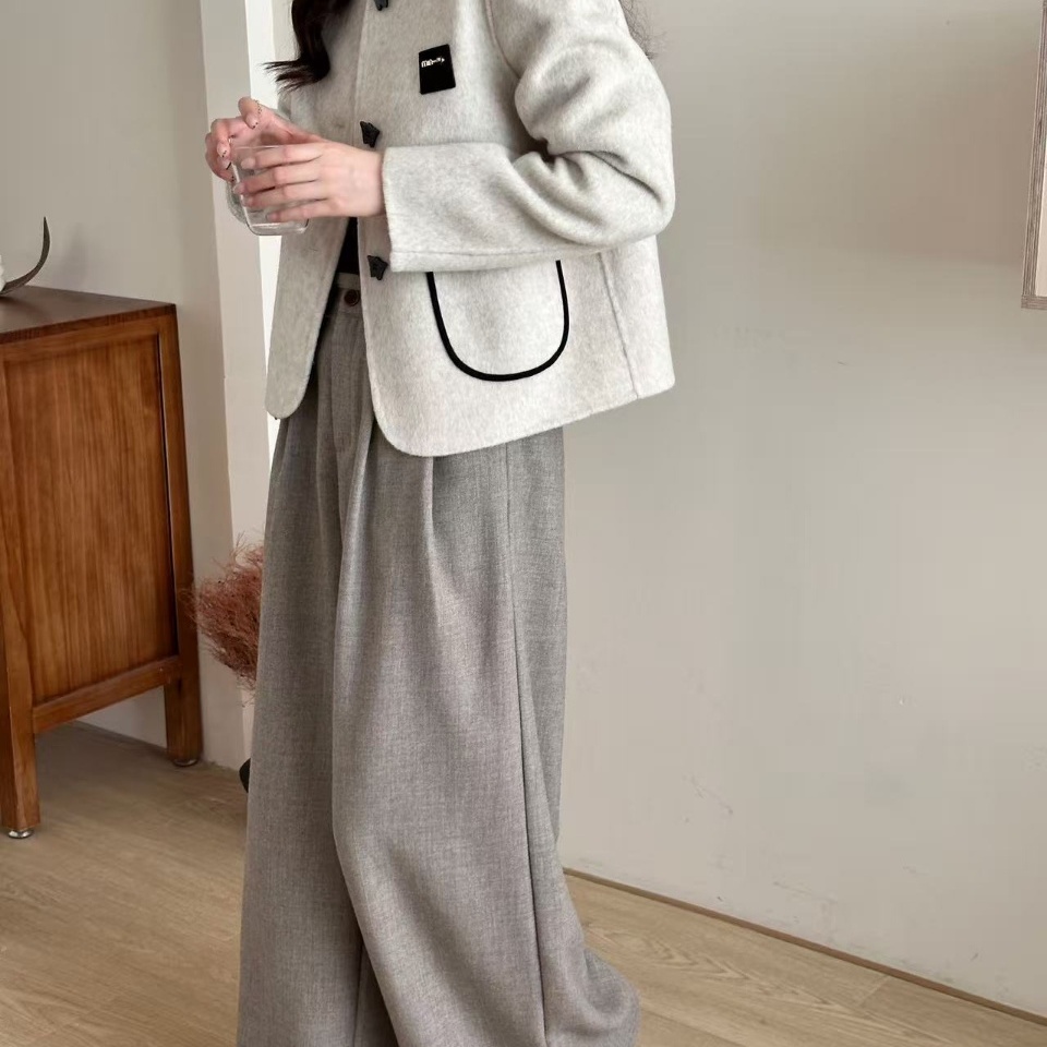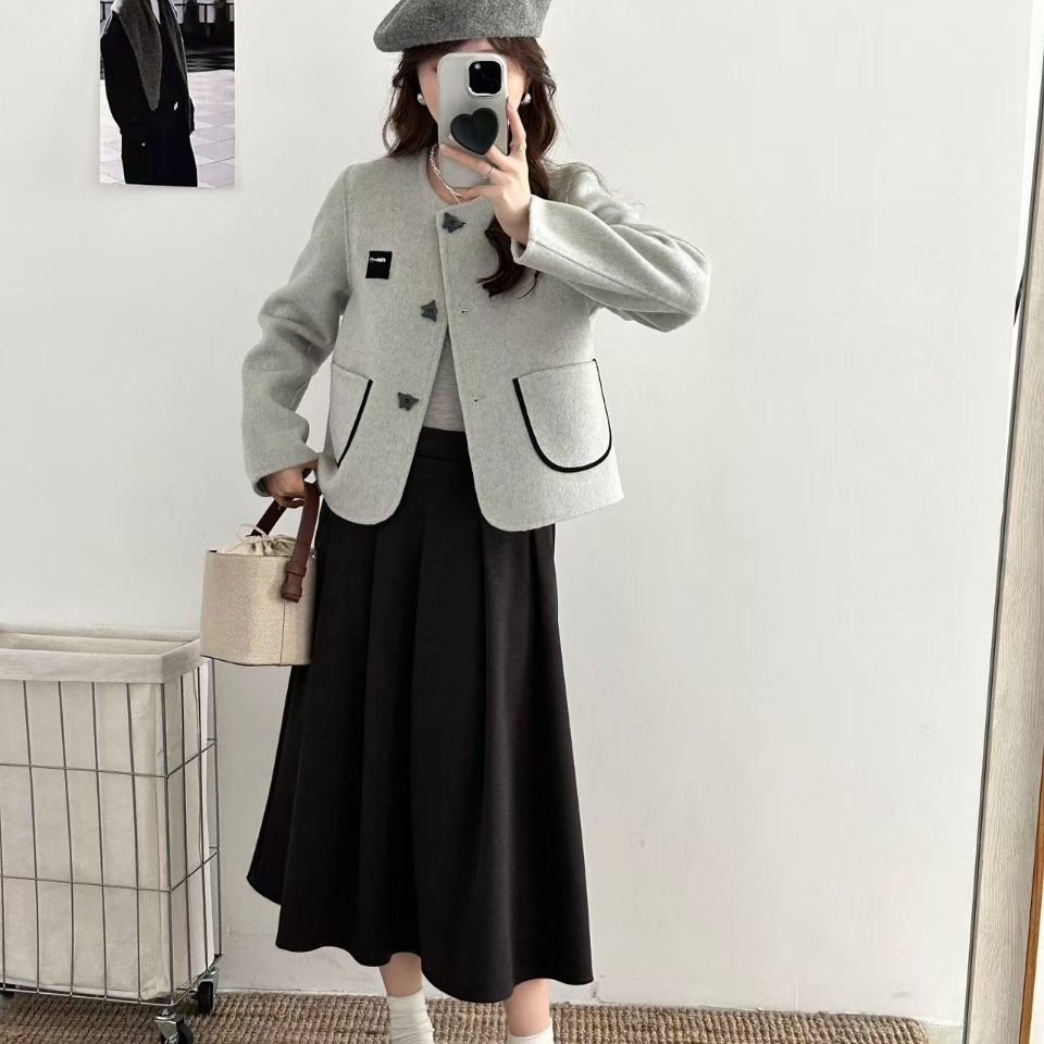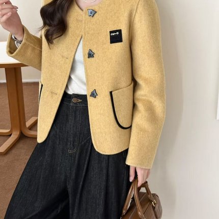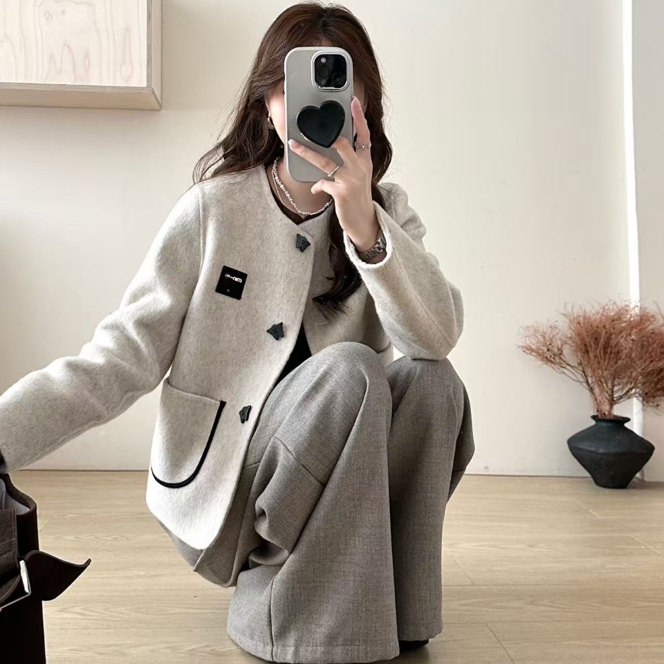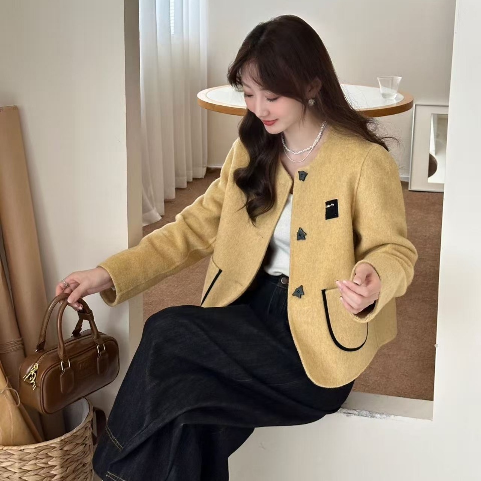 韩系气质显瘦双面羊毛大衣女短款2025新款秋百搭休闲毛呢外套女