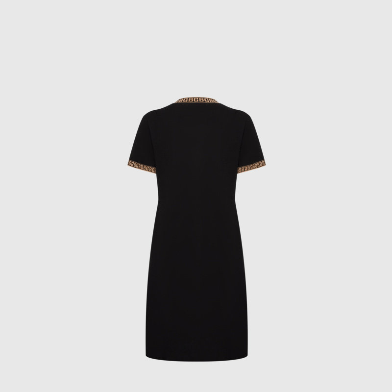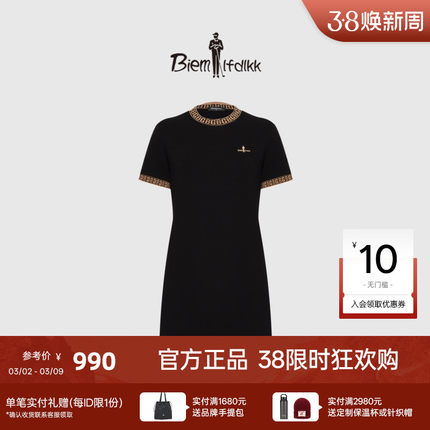【美丽诺羊毛】比音勒芬春夏女士BG老花图案中长款短袖连衣裙