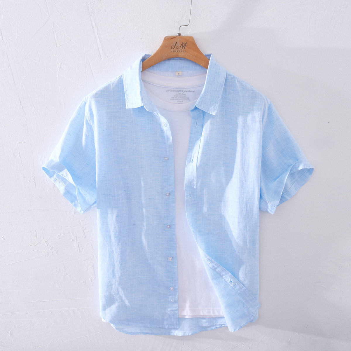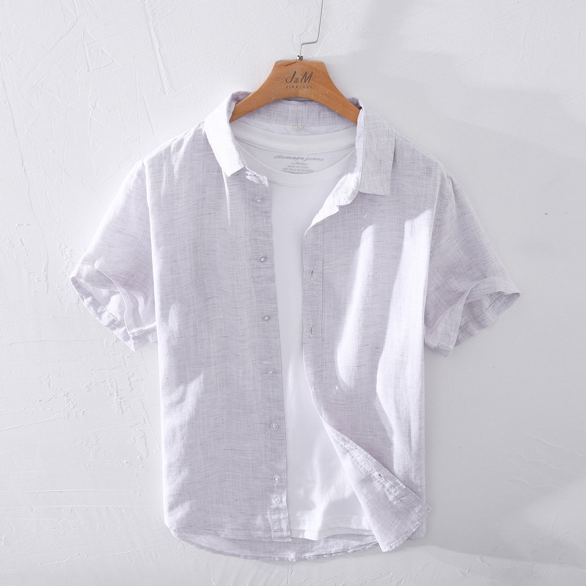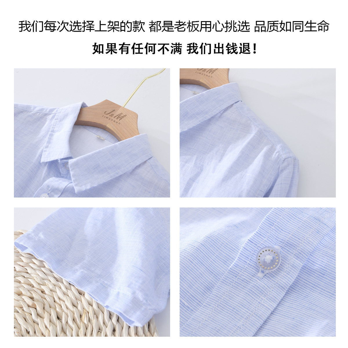 极麻清新大码百搭休闲短袖棉麻衬衫男士夏季日系青年宽松亚麻衬衣