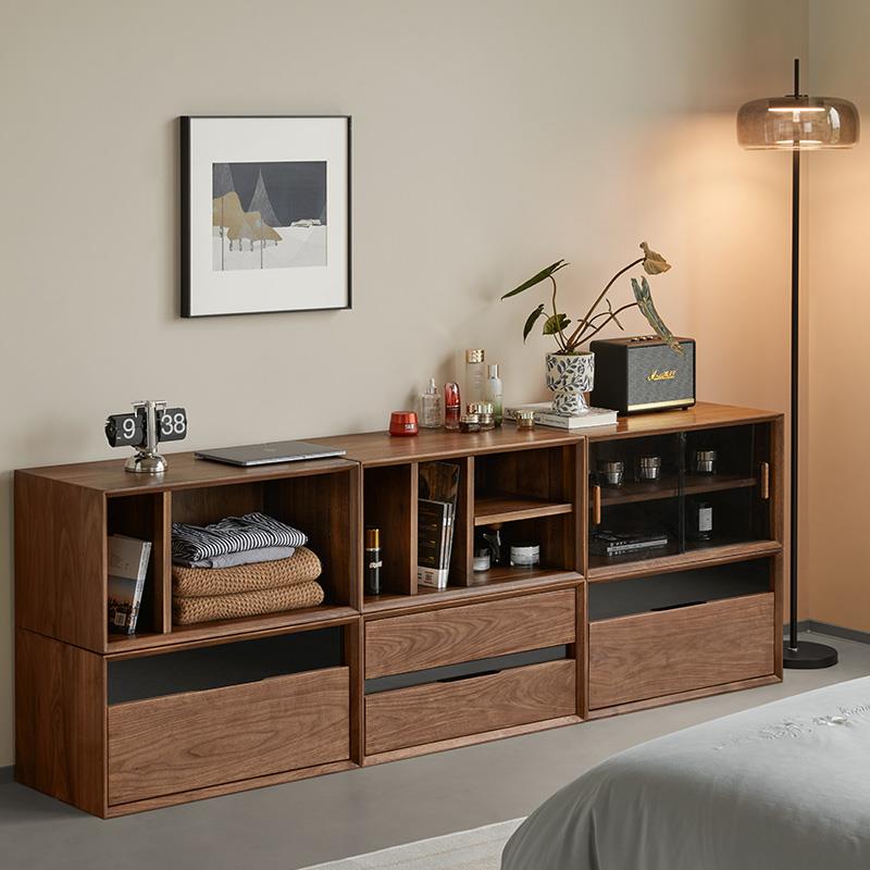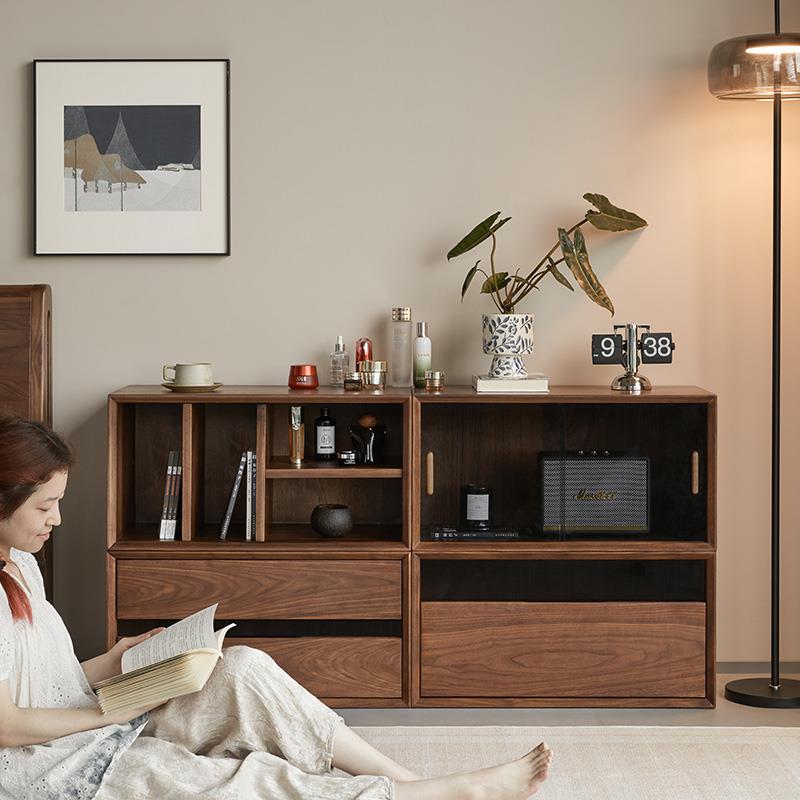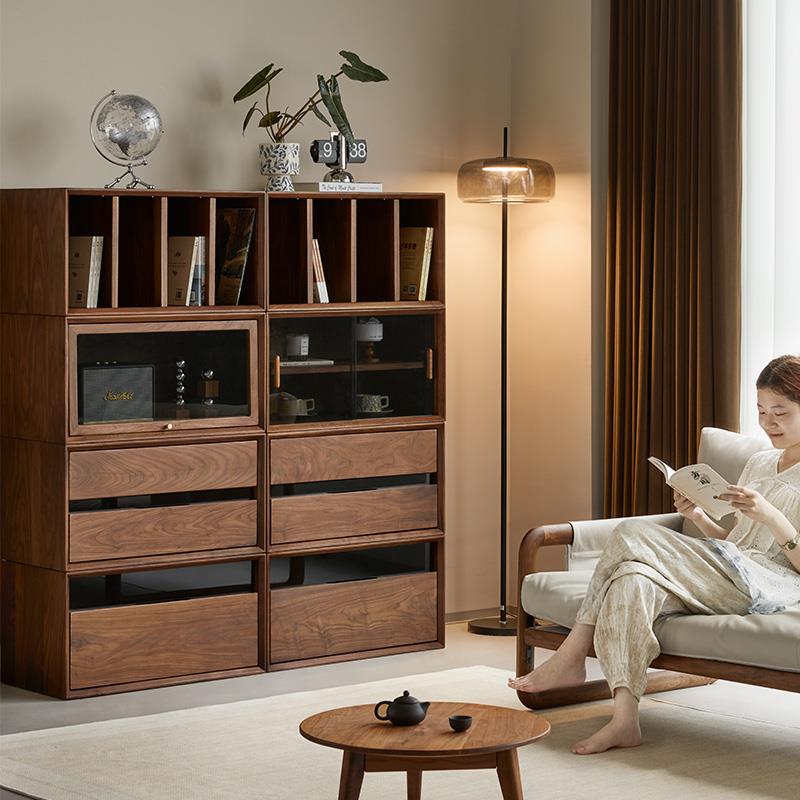北美黑胡桃木客厅隔断柜边柜书柜自由随意组合模块实木书房展示柜