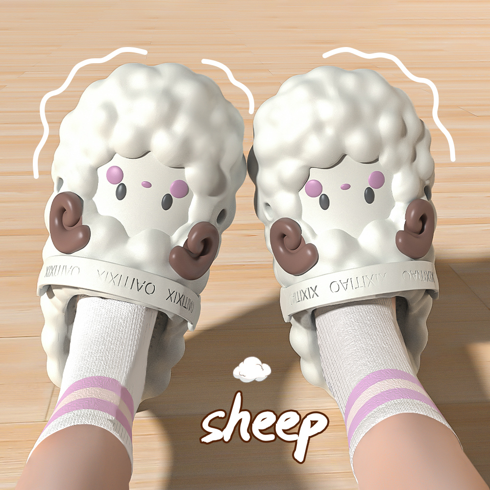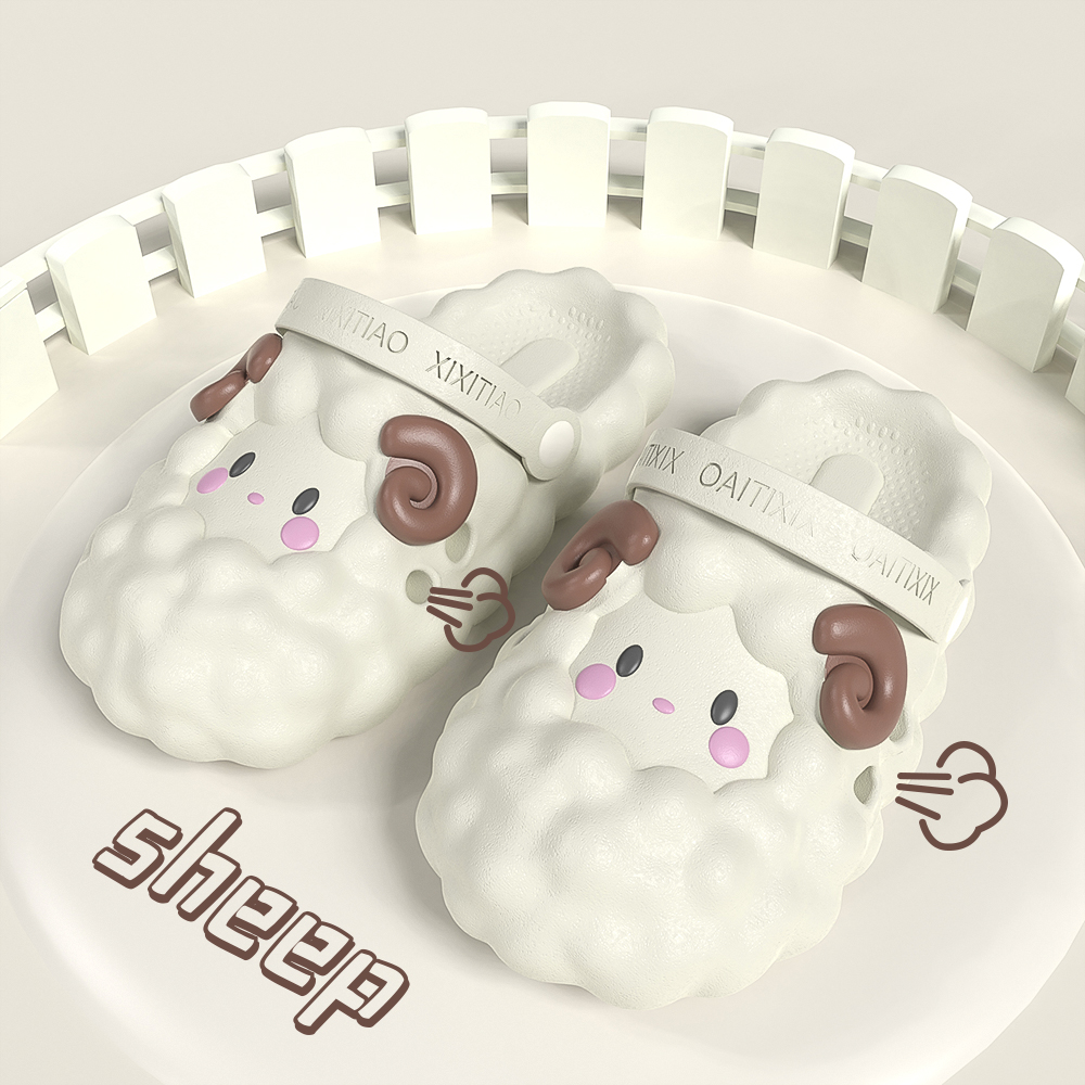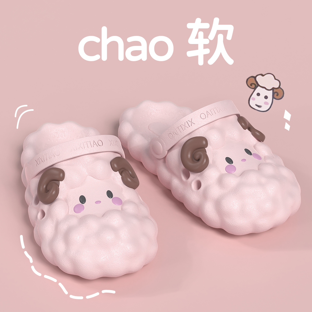 可爱小羊凉拖鞋男童女童软底防滑夏季儿童亲子室内居家包头洞洞鞋