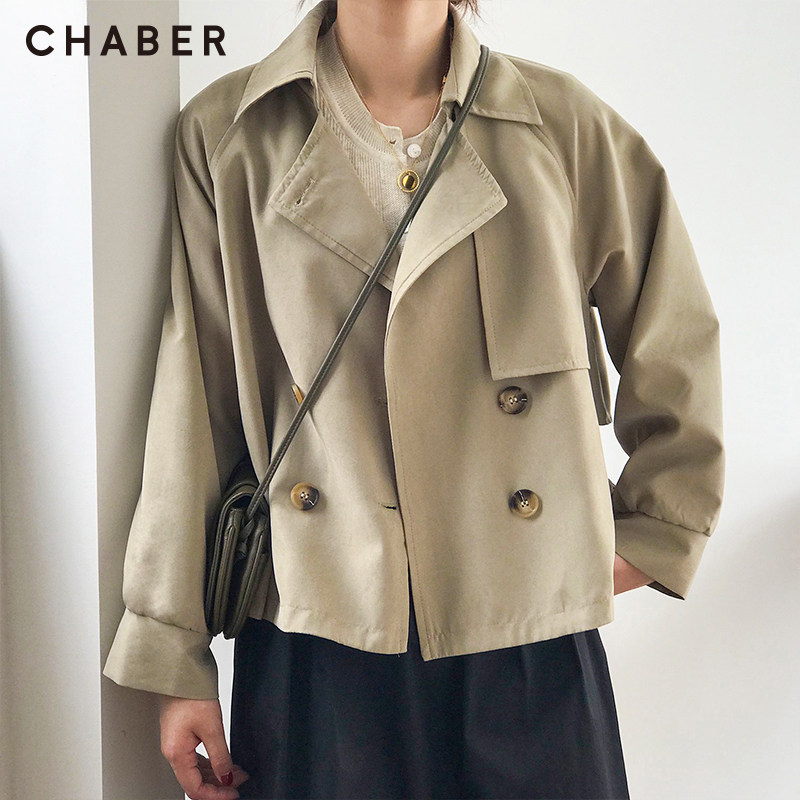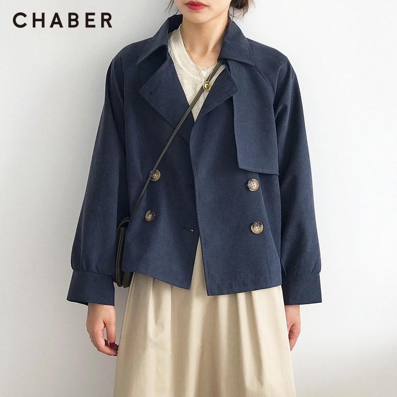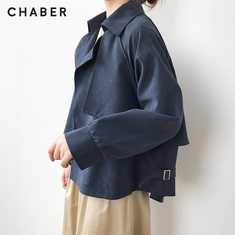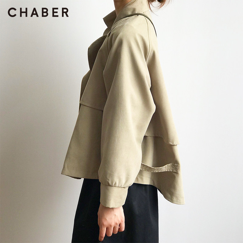 chaber巧帛春季新款简约宽松简约纯色麂皮绒西装领长袖风衣外套