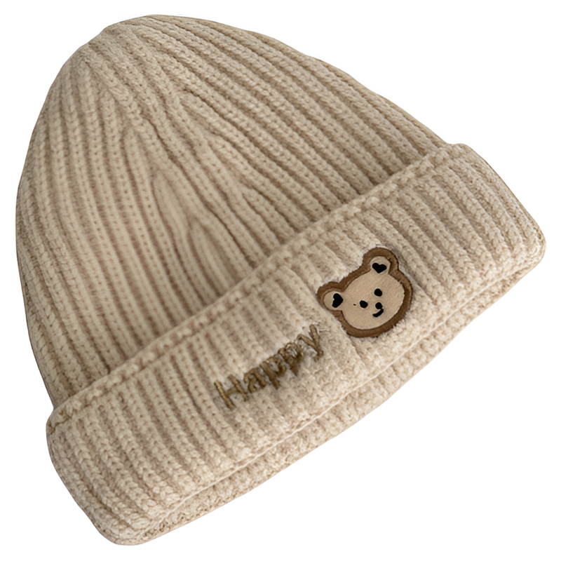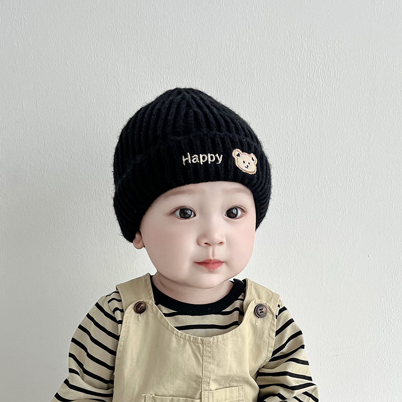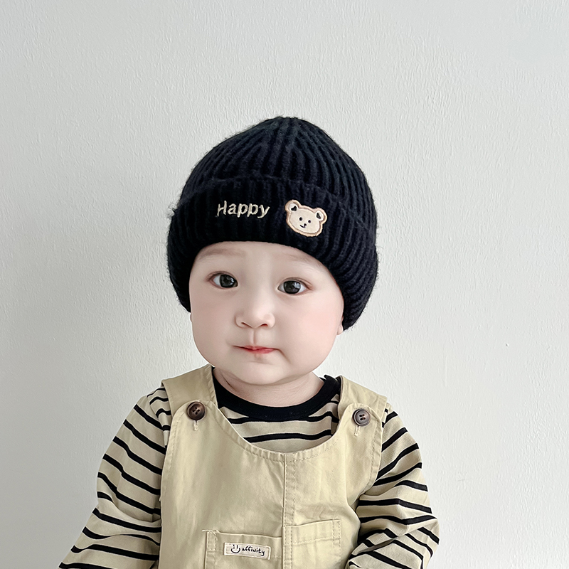 宝宝帽子秋冬季可爱小熊婴儿毛线帽保暖加厚针织男女童护耳套头帽