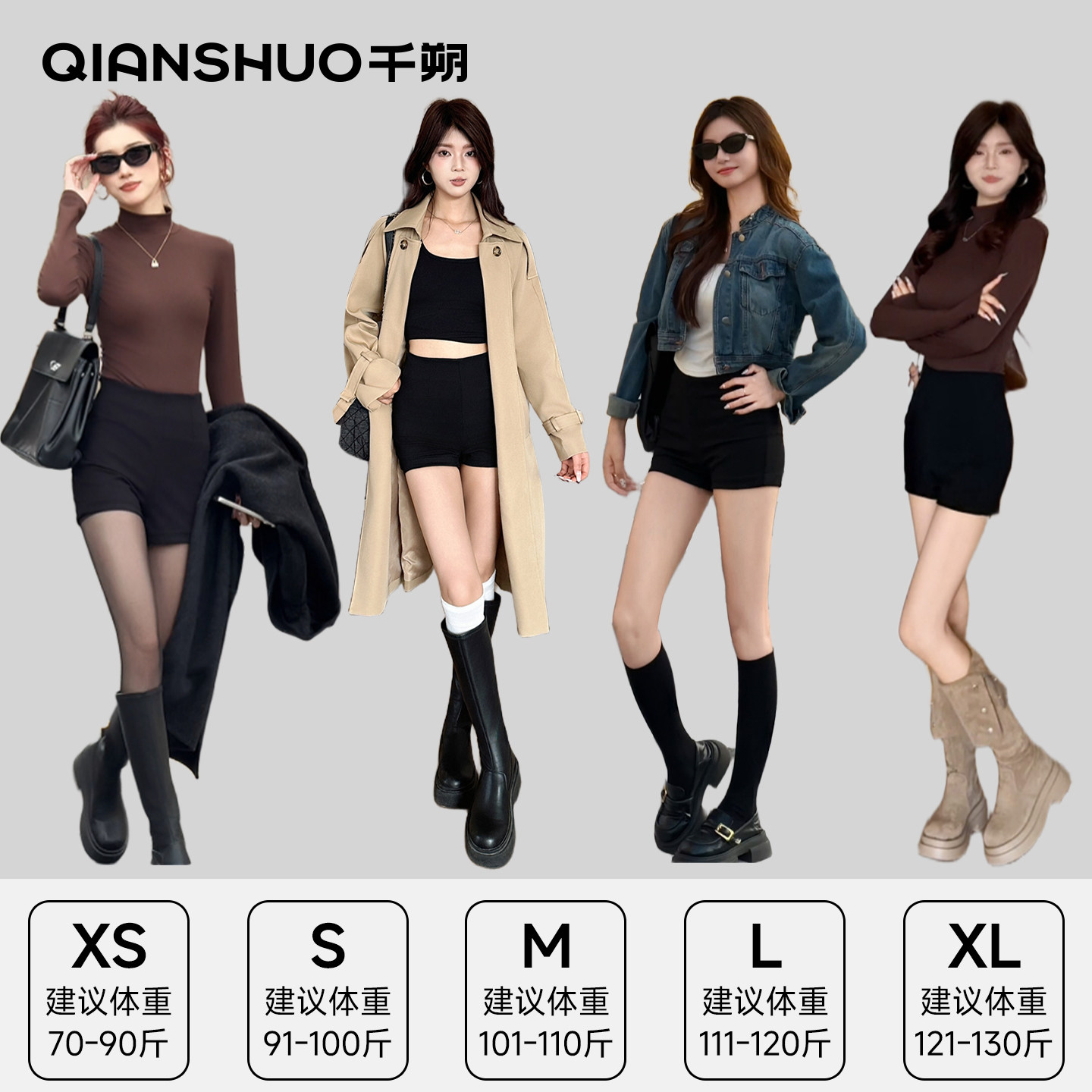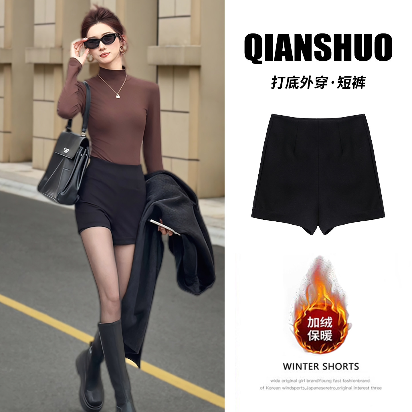 千朔加绒提臀热裤女高腰弹力紧身可外穿秋冬季黑色打底高级感短裤