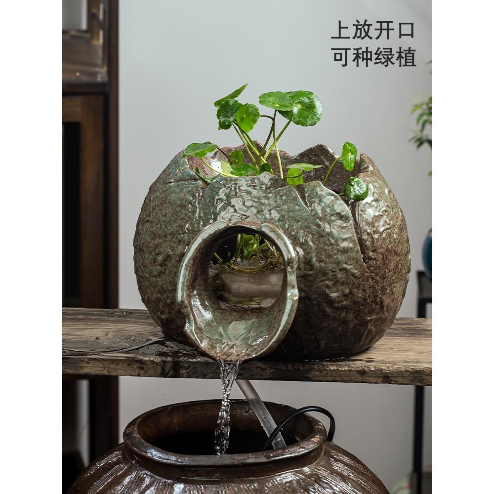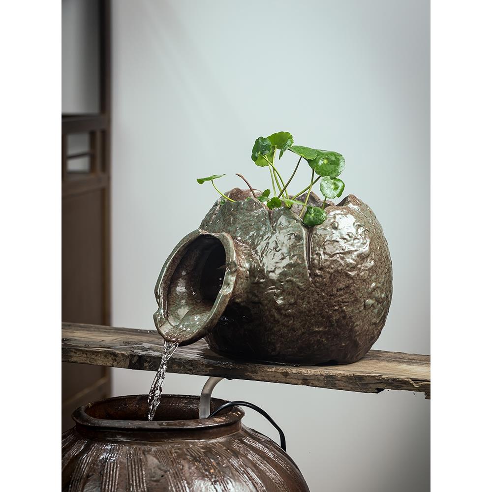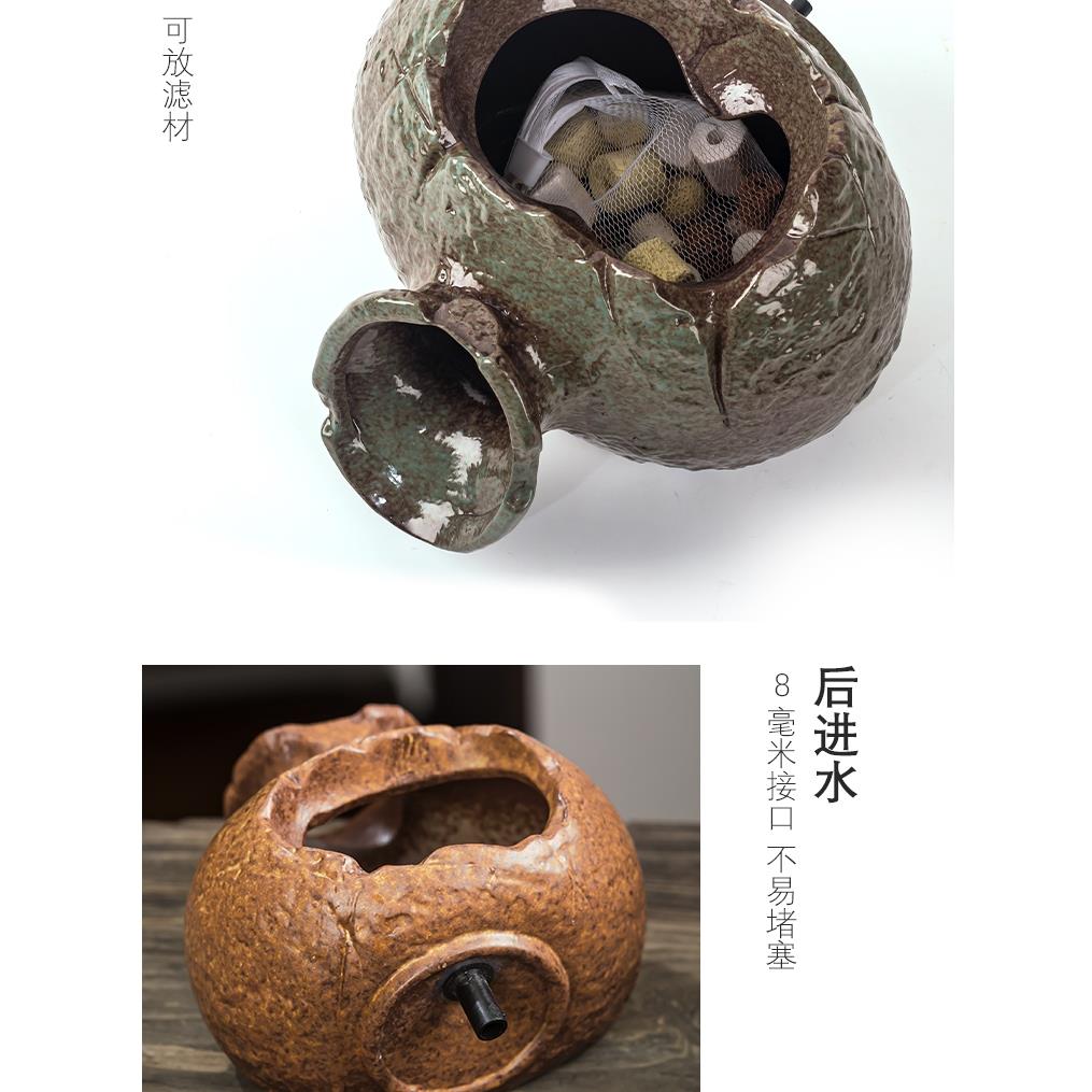 古法养鱼水缸上流水摆件开口陶罐喷泉循环增氧过滤出水口水泵配件