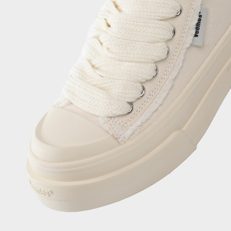 VEEMES月牙系列翘头鞋米白低帮帆布鞋复古毛边厚底男女增高休闲鞋