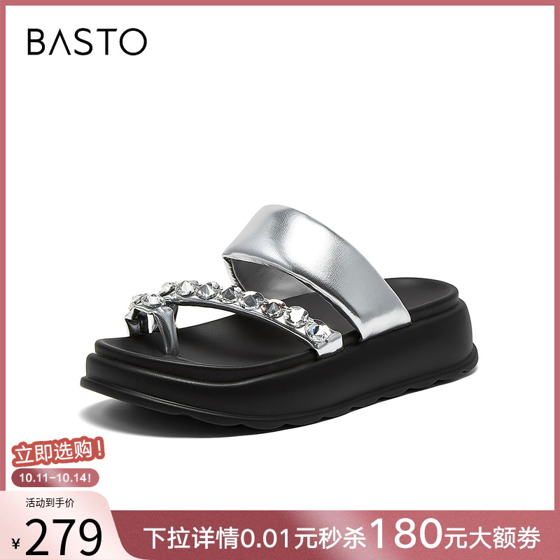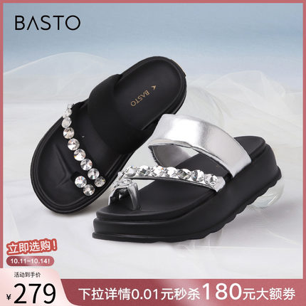 百思图薄荷黑巧夏季商场新款松糕厚底女居家外穿拖鞋I5916BT4
