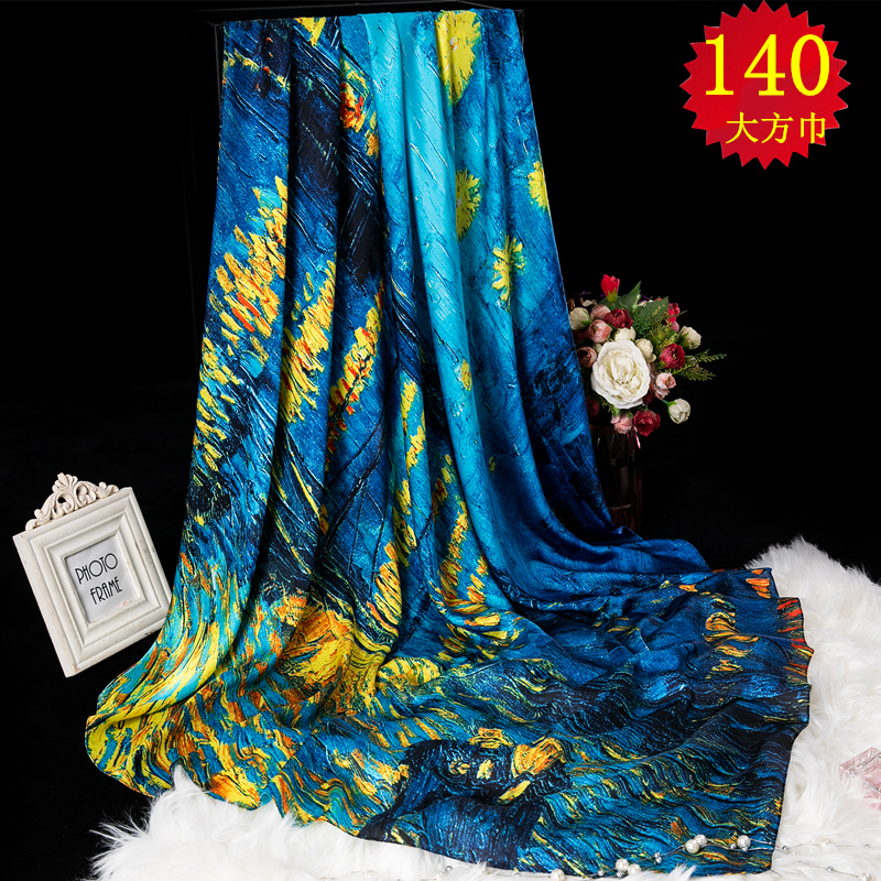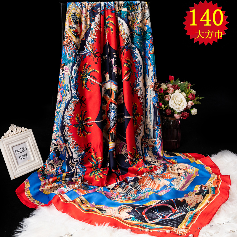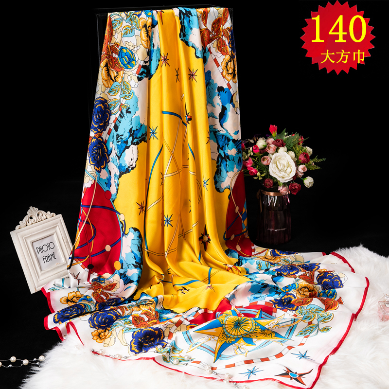 正方形真丝丝巾女桑蚕丝围巾140CM大方巾秋冬季薄款方形大披肩女