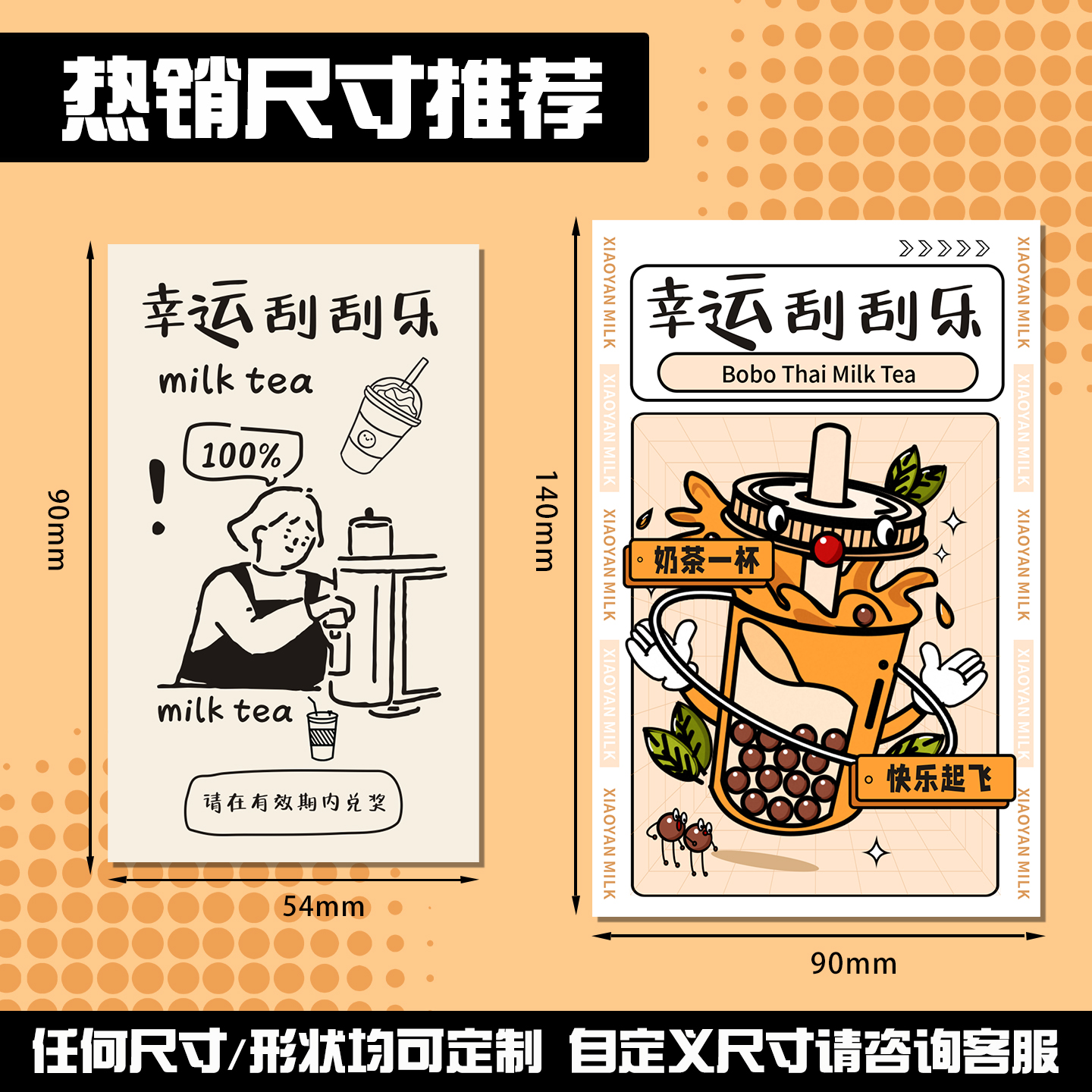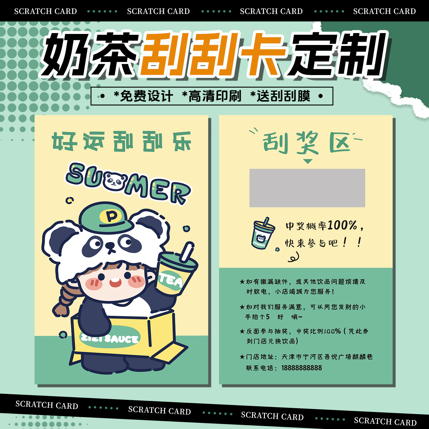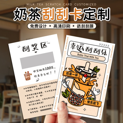 奶茶刮刮卡定制ins风商用幸运开业活动抽奖券咖啡饮品店diy自制涂层刮刮乐餐厅外卖积分小卡片设计logo订印刷