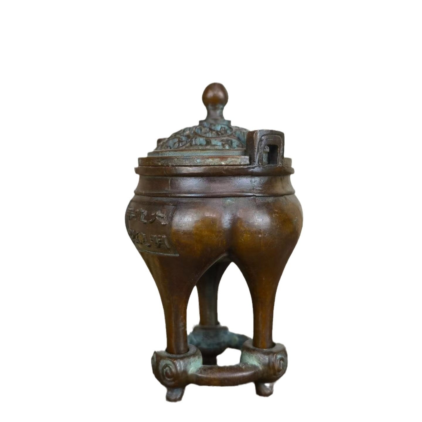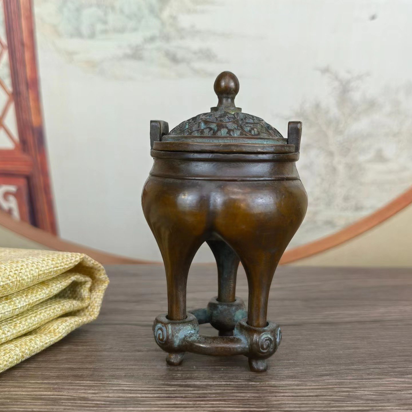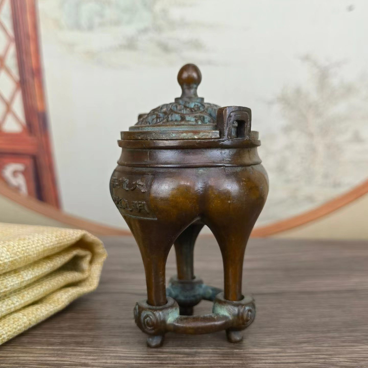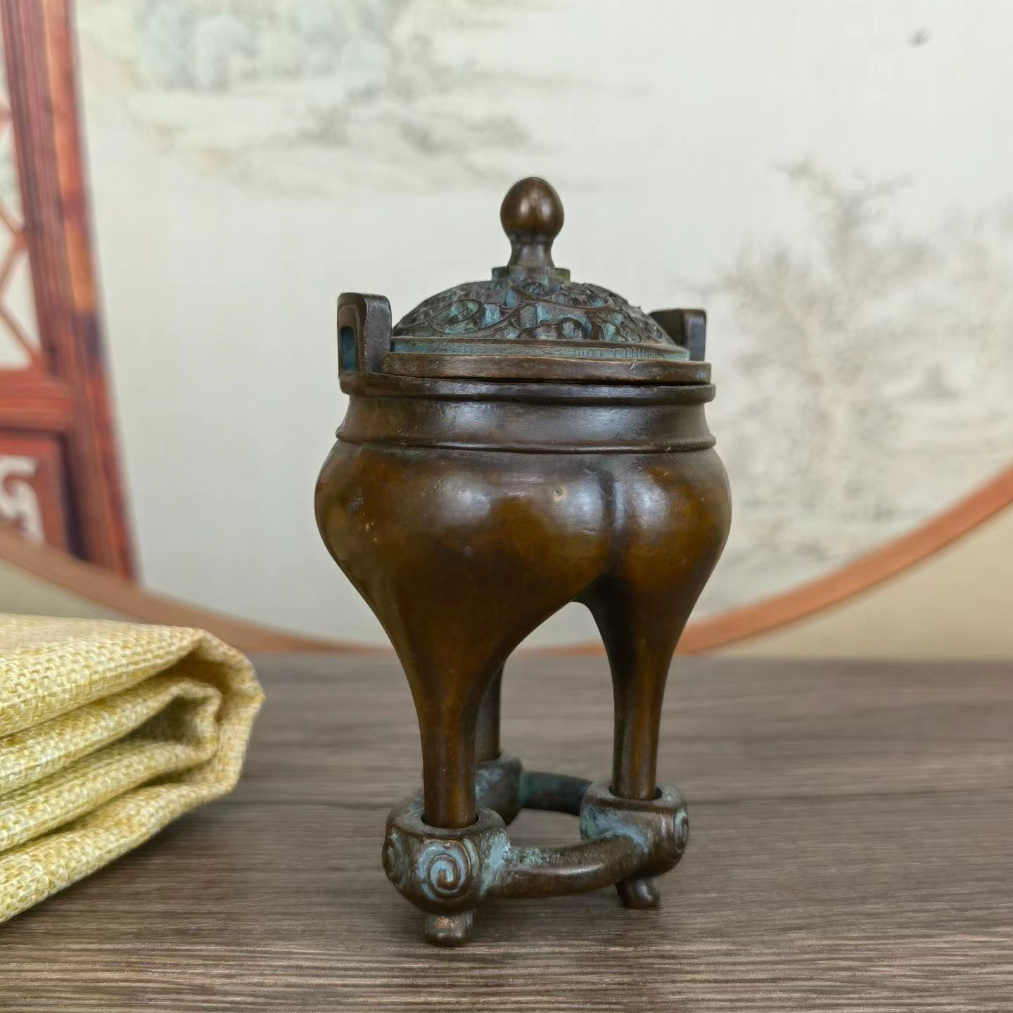 古玩杂项古董旧货老铜三足双耳炉摆件包浆醇厚老铜器老物件收藏