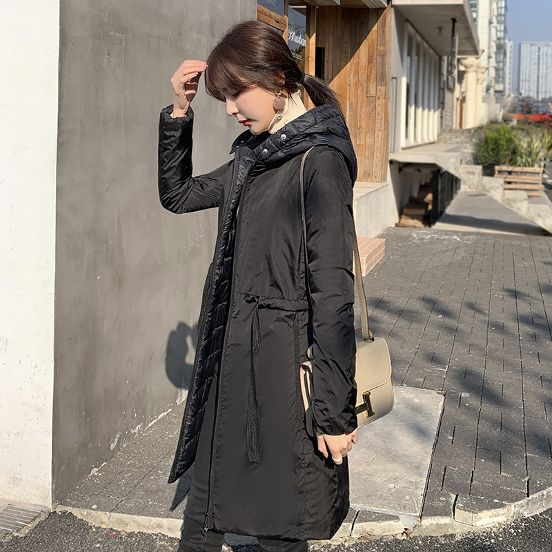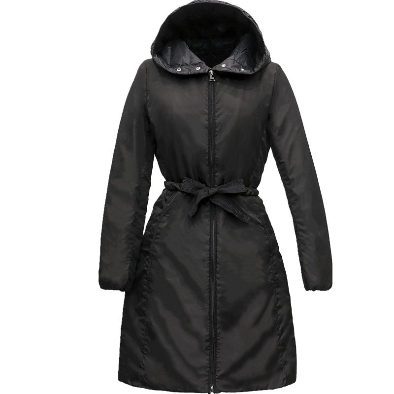 诗都奇反季清仓白鸭绒羽绒服女轻薄中长款修身显瘦秋冬装黑色外套