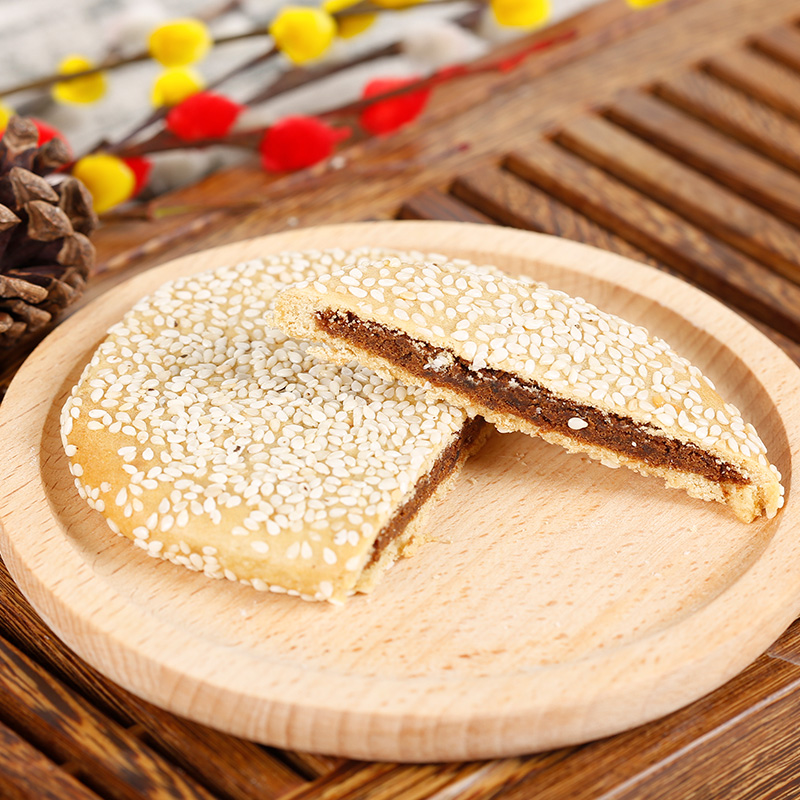 苏州特产黄富兴礼袋松子枣泥麻饼传统手工糕点心年货小吃450g盒装
