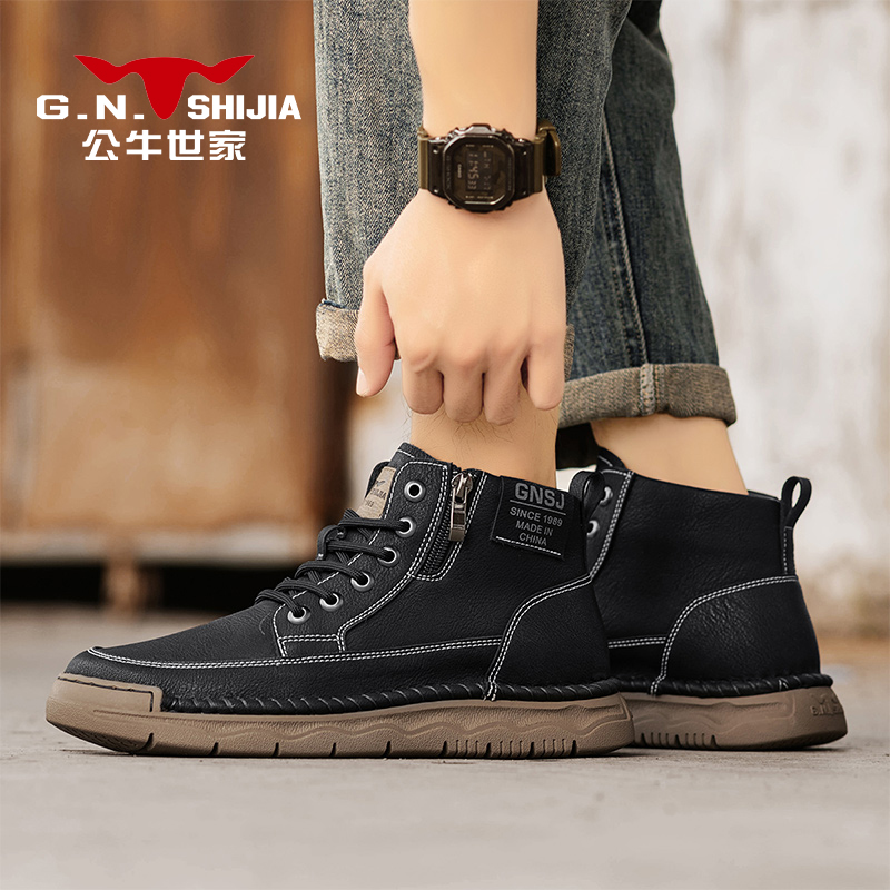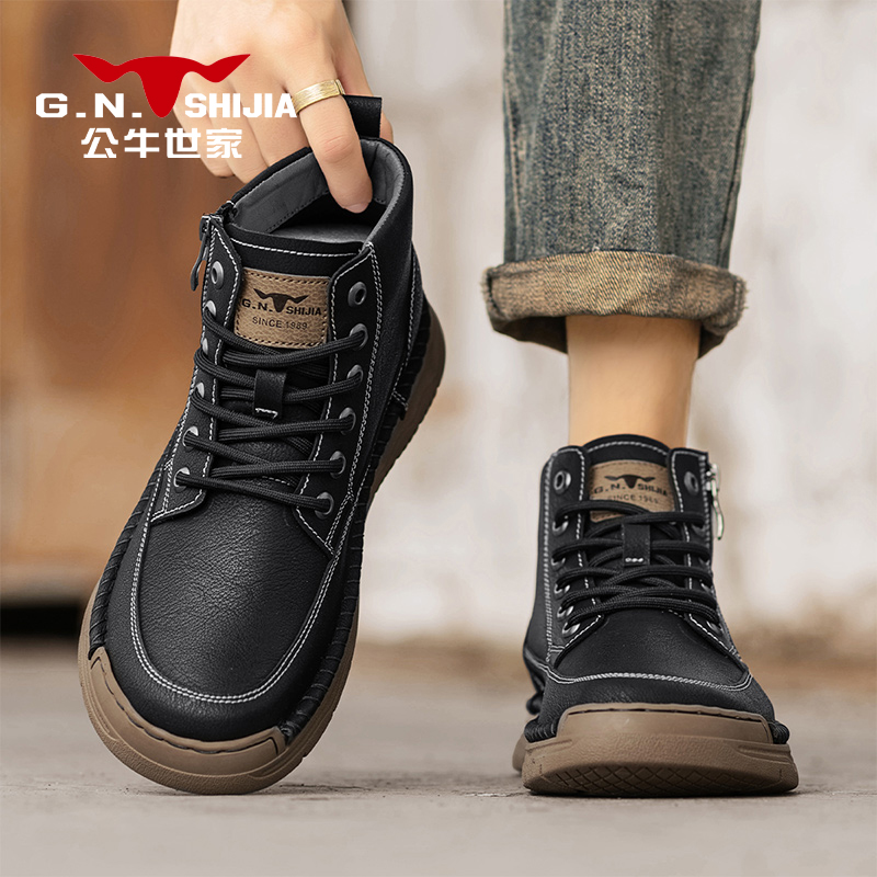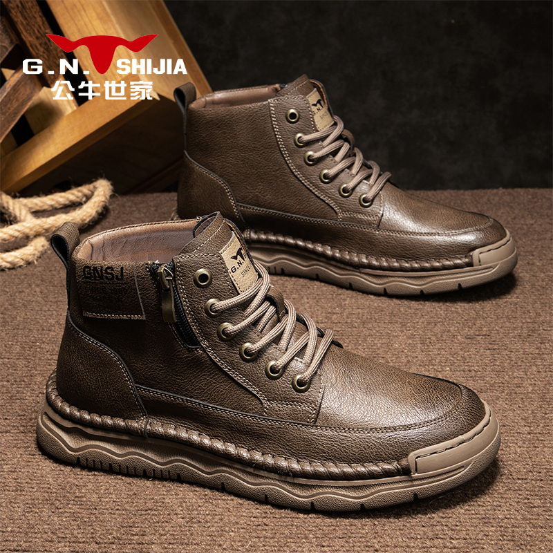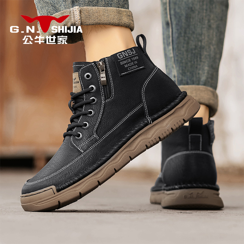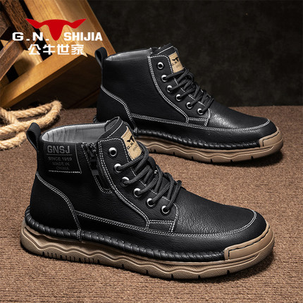 公牛世家马丁靴男款秋冬季户外休闲厚底皮靴男士防滑英伦风靴子男