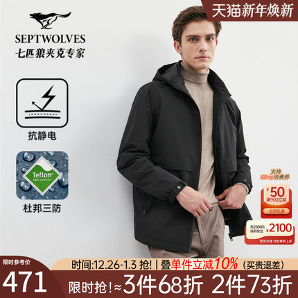 [三防]七匹狼官方正品男士夹克抗静电新款商务外套连帽薄上衣茄克