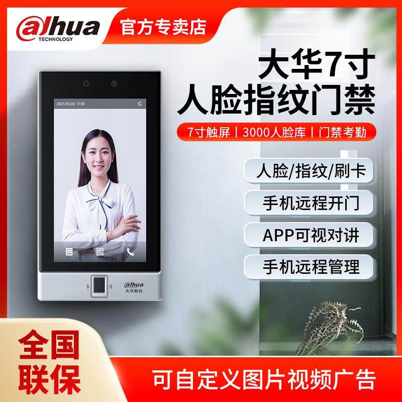 大华7寸人脸识别门禁系统一体机办公室考勤刷卡远程可视对讲41CS
