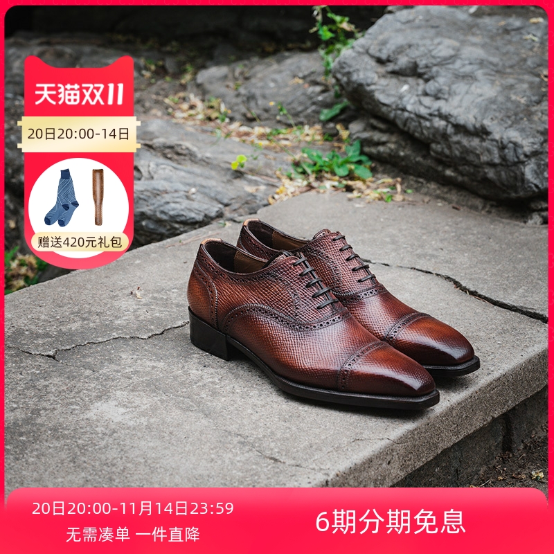 意大利Antonio Meccariello手工缝制固特异工艺 荔枝纹牛津皮鞋男