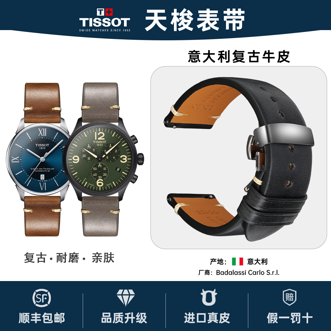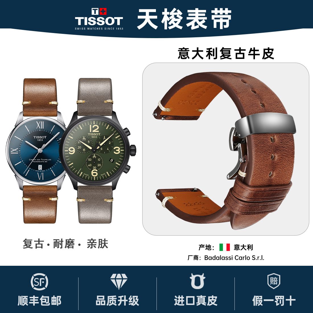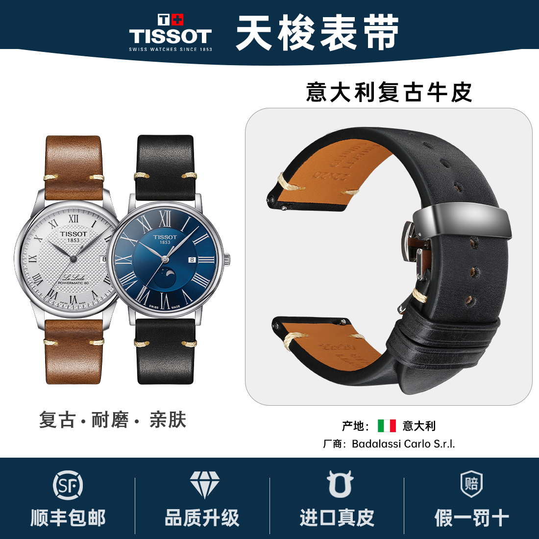 快拆真皮表带适用原装天梭1853力洛克杜鲁尔海星男复古手表表带