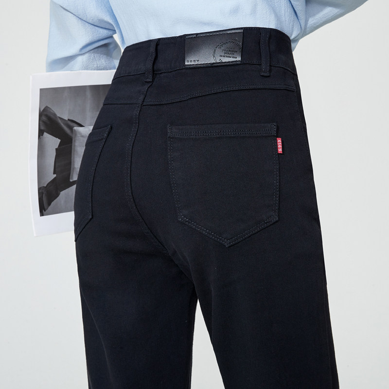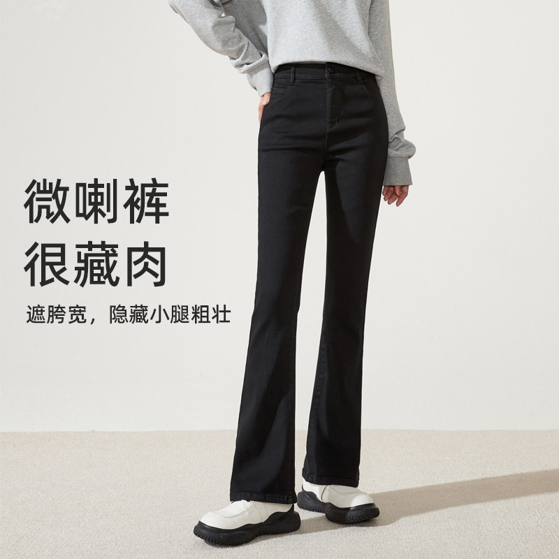 逸阳黑色不掉色长牛仔裤喇叭裤女秋冬新款加绒女裤大码显瘦微喇裤