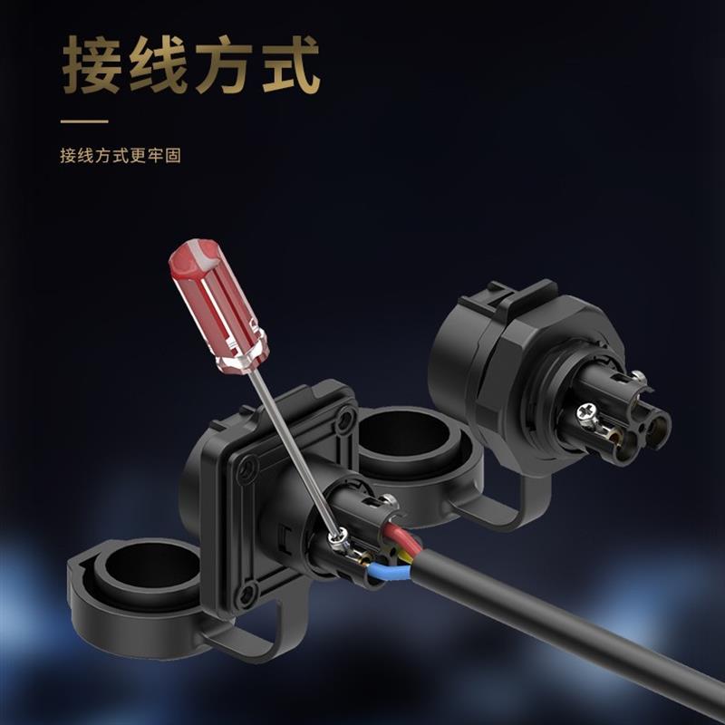 适配LP16航空插头面板正装锁线冲压款2芯3芯单孔面板式防水电源连