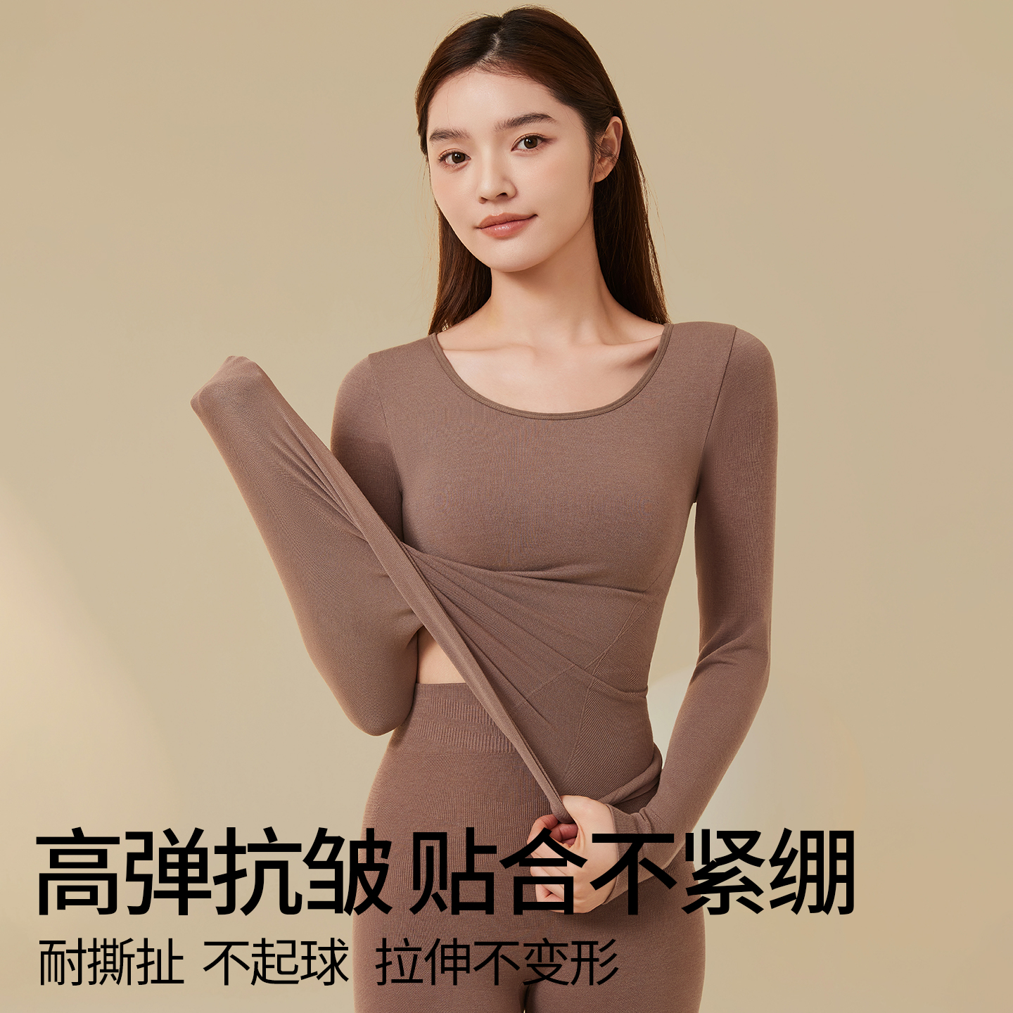 猫人粉底液隐形无痕秋衣秋裤女保暖内衣套装秋冬新款修身美体衣
