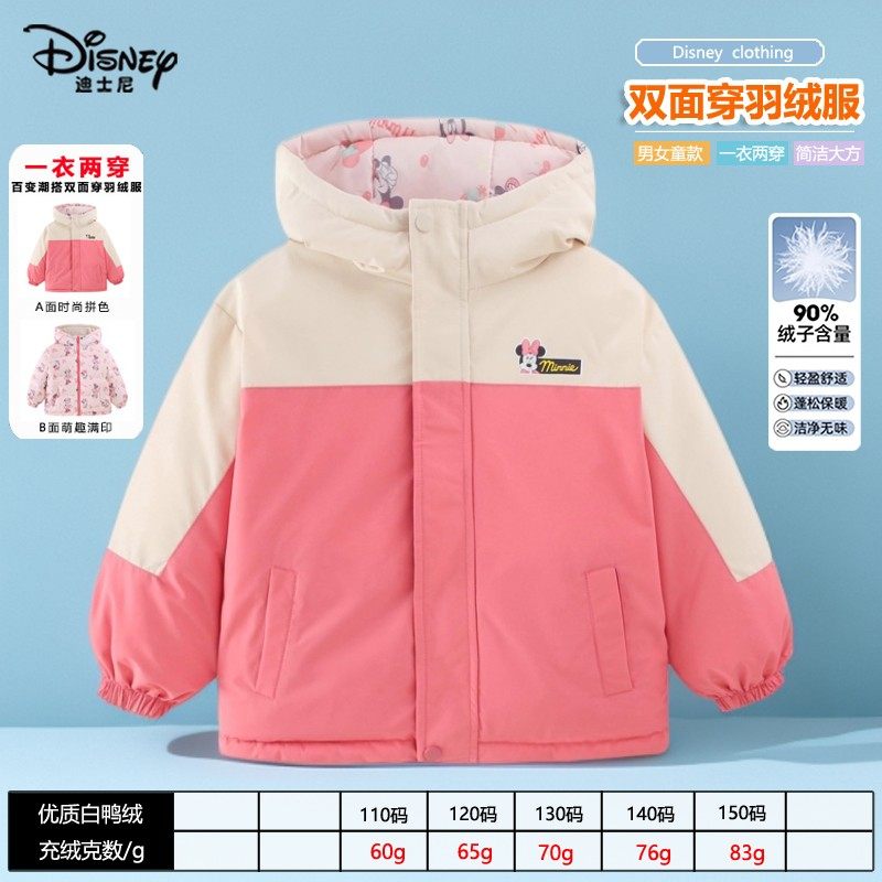正品迪士尼童装女童双面穿羽绒服儿童秋冬季新款女孩轻薄羽绒外套