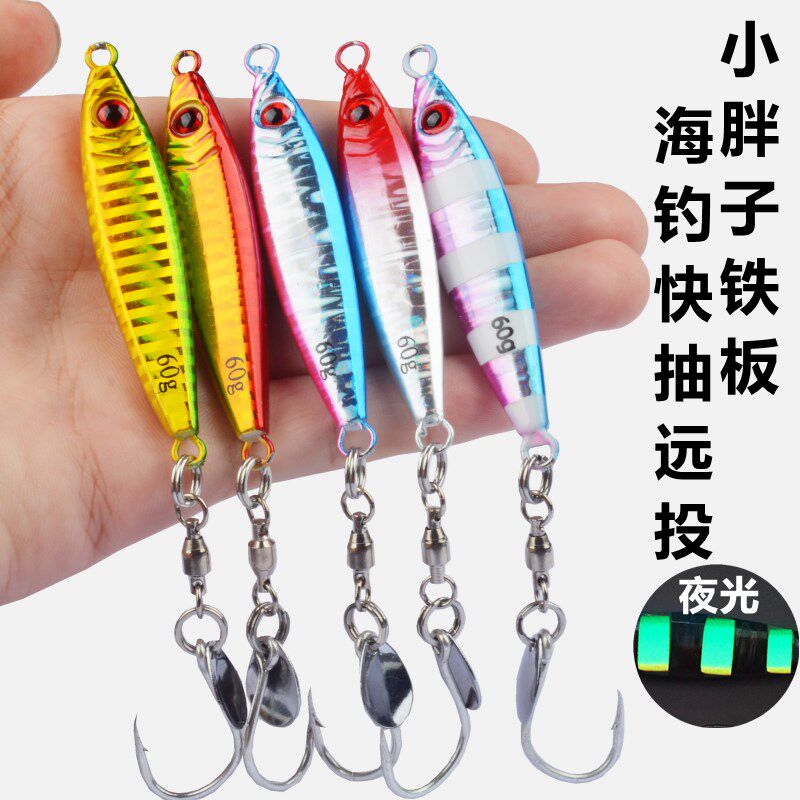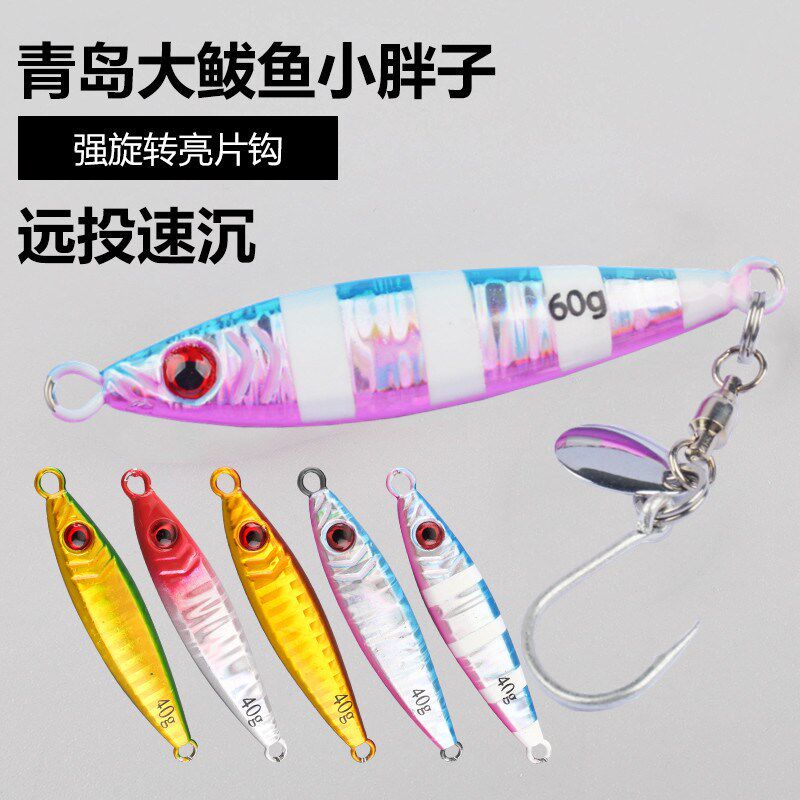 热销青岛小胖子海钓铁板带钩带亮片钩带鱼刀鱼鲅鱼马鲛40g60g80g