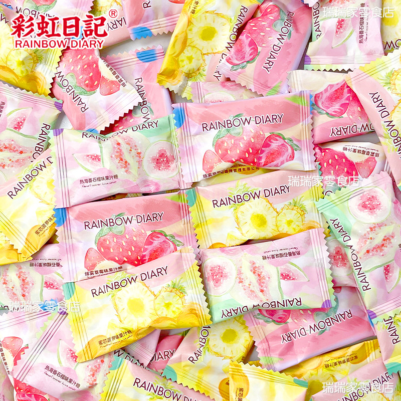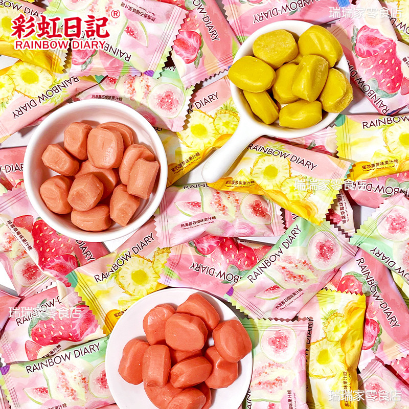 彩虹日记番石榴味软糖蜜芯菠萝草莓味果汁夹心糖订婚糖喜糖果零食