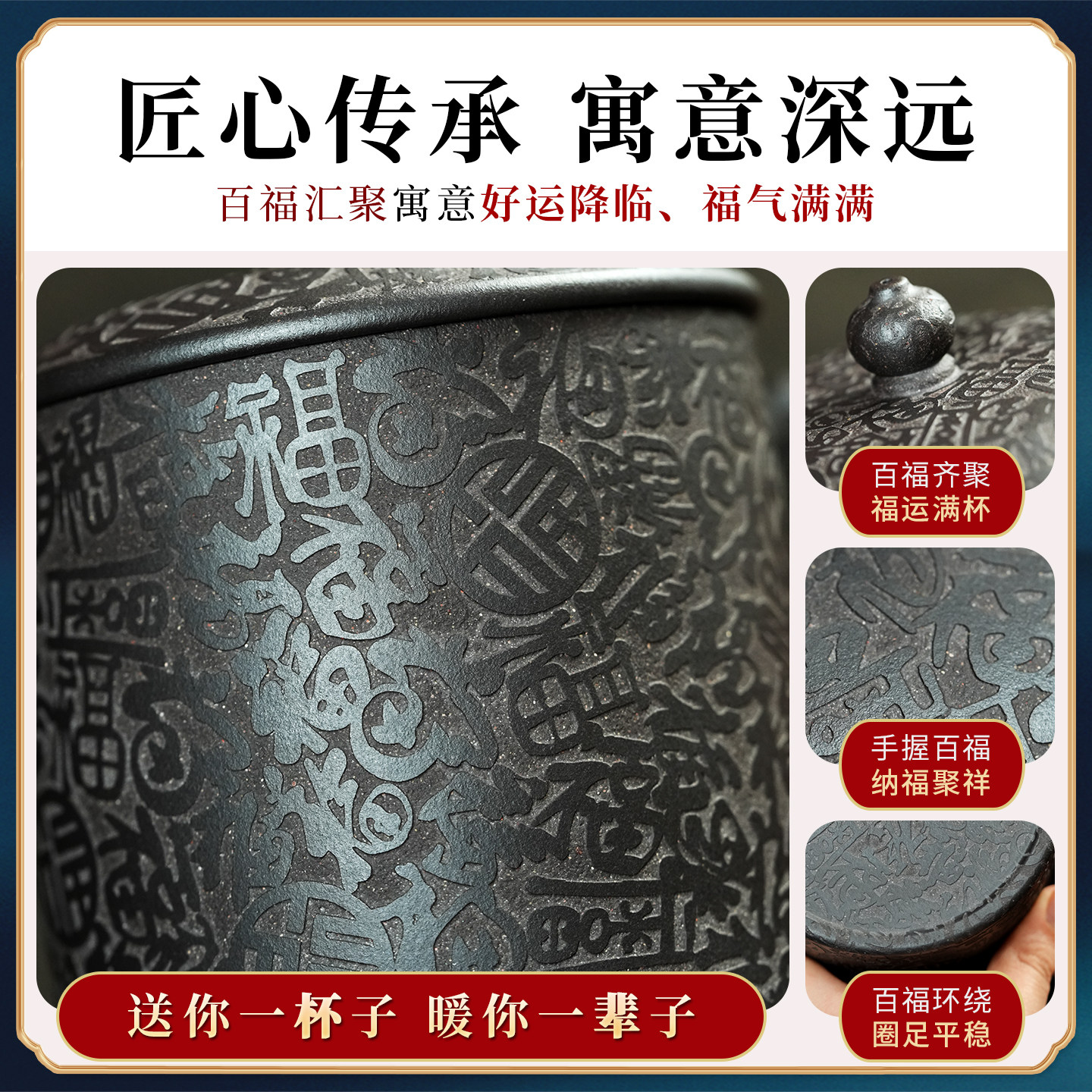 宜兴紫砂杯原矿男士女纯手工泡茶杯刻字百福家用茶具办公杯送礼品
