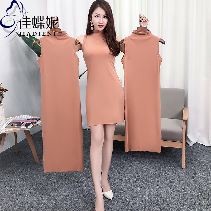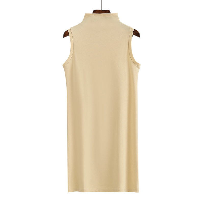 春季新款韩版半高领修身中长款纯白无袖短袖纯色背心打底连衣裙女