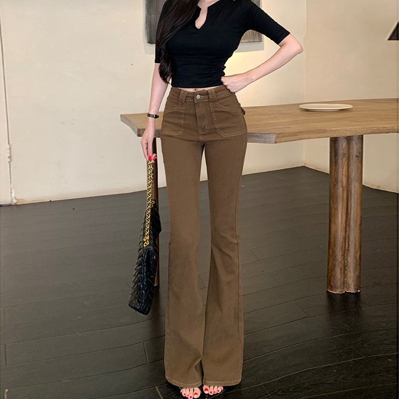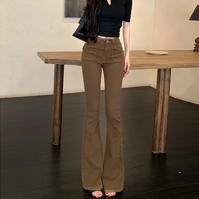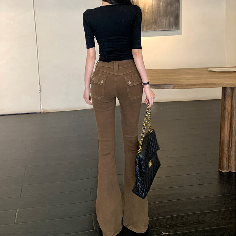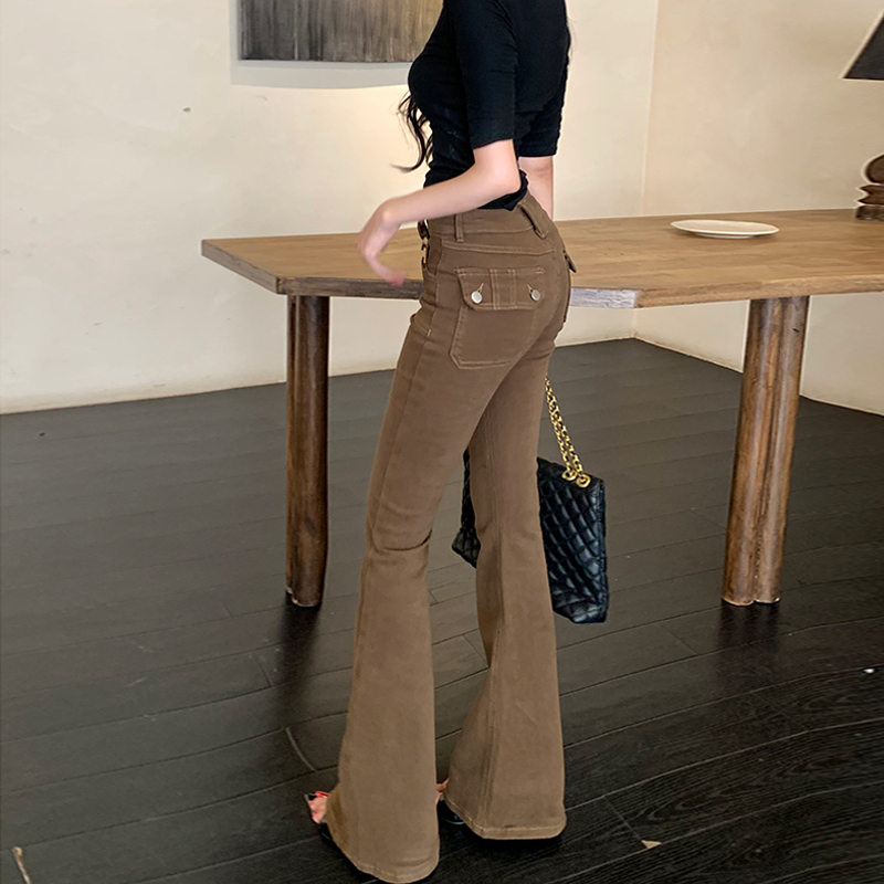 李李服饰加绒深咖色低腰微喇叭牛仔裤女2025年冬季设计感辣妹长裤