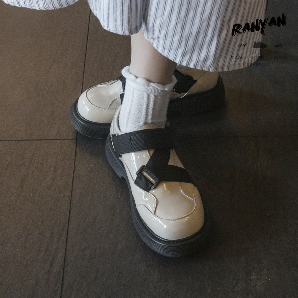 Ranyan冉言【不撞款】日系交叉漆皮圆头小皮鞋女原创设计厚底单鞋