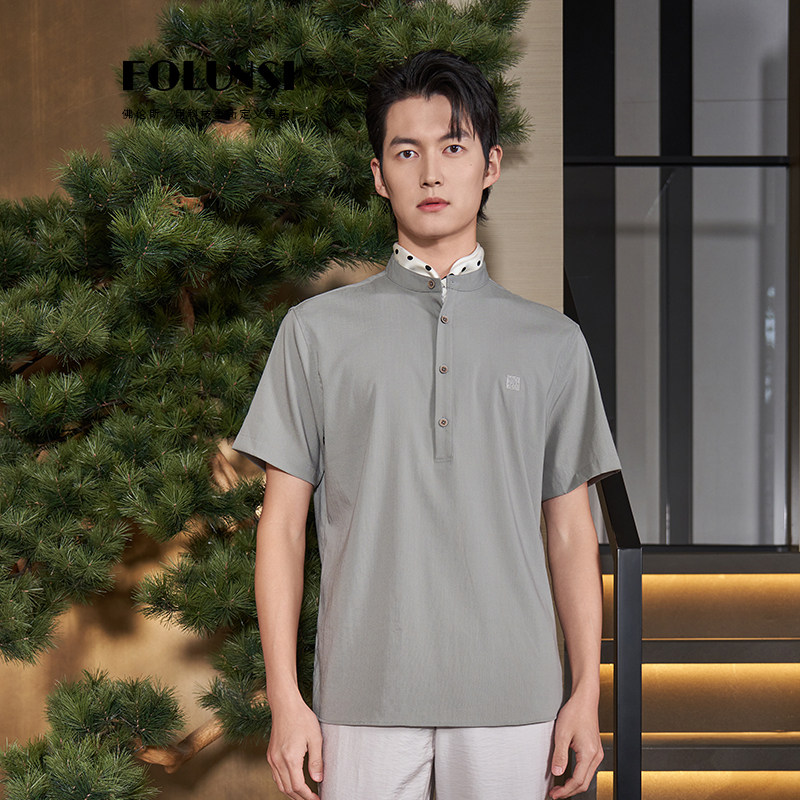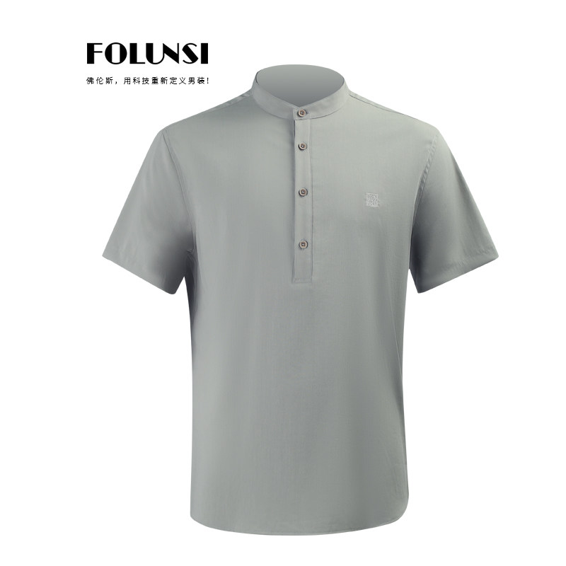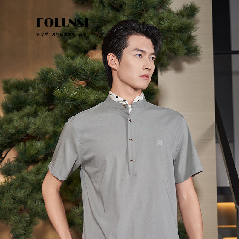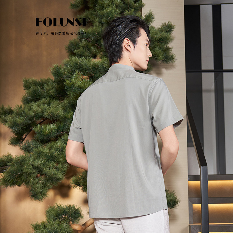 佛伦斯FOLUNSI衬衣男春夏款男士休闲中式立领时尚短袖衬衫男