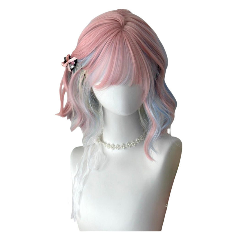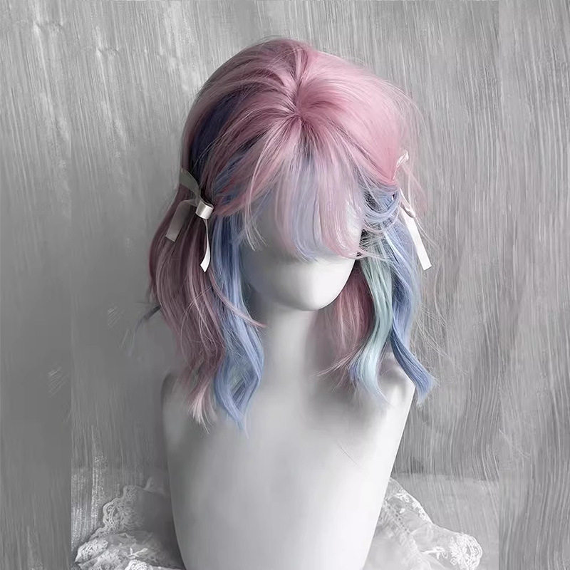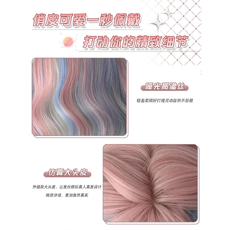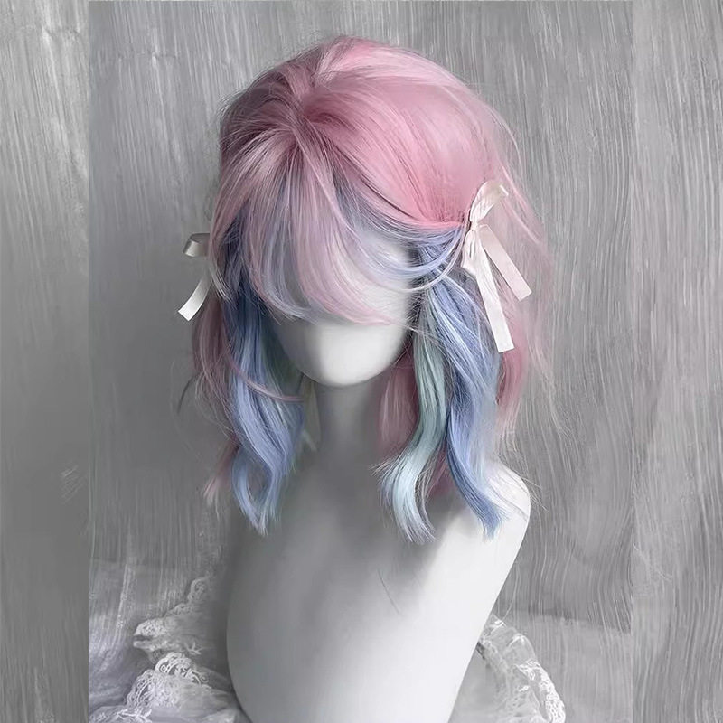 萝莉伪娘假发全头套粉色短发彩虹多巴胺jk短卷发日常女装大佬cos