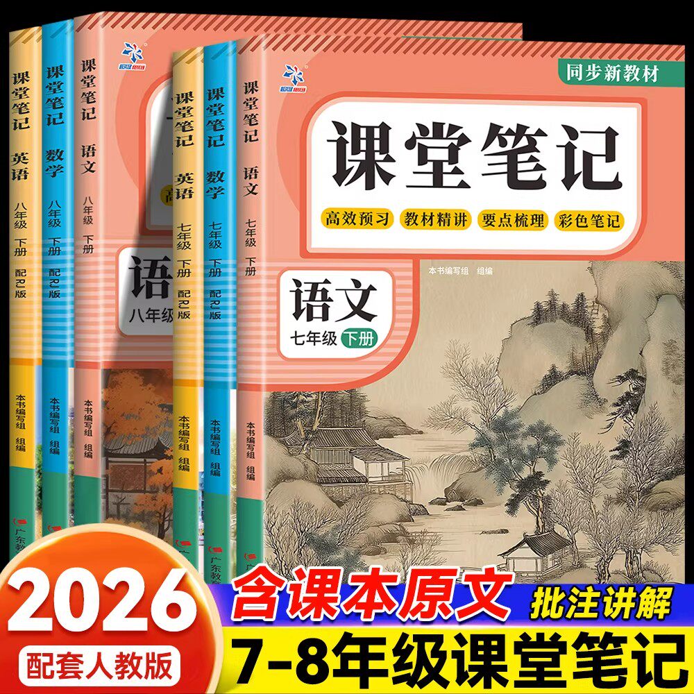 2026春新版七八年级下册课堂笔记语文数学英语初中同步新课本预习教辅资料全套人教版寒假作业衔接教材学霸教材笔记中学教材全解讲