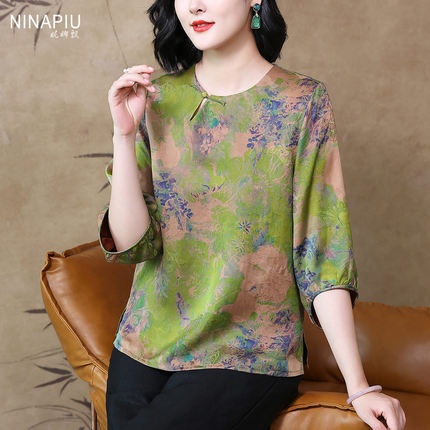 新中式花罗正品香云纱真丝上衣女2025夏季新款气质国风贵夫人T恤