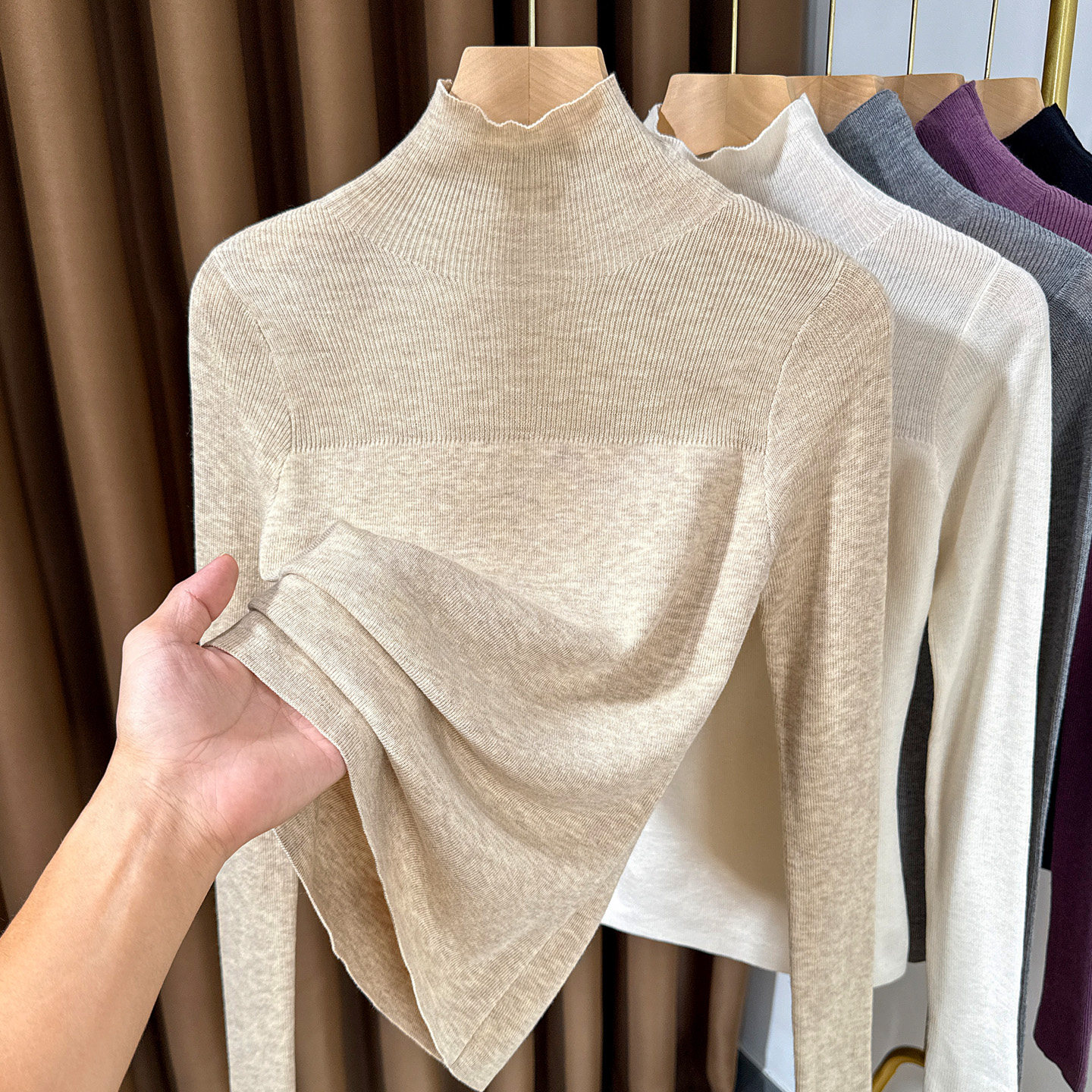 2025新款灰色高领毛针织打底衫女高级感秋冬内搭软糯毛衣洋气小衫